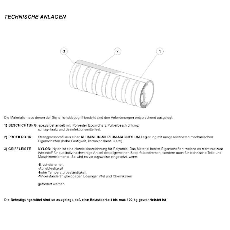Sanitäts Wandhaltegriff, 55cm, Farbe weiß, rutschfeste Oberfläche