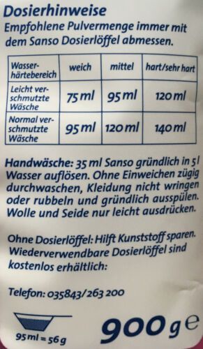 sanso Sanso Waschpulver 900 gr-Ideal für Wolle und Seide- Farb-und Faserschutz - 16 WL