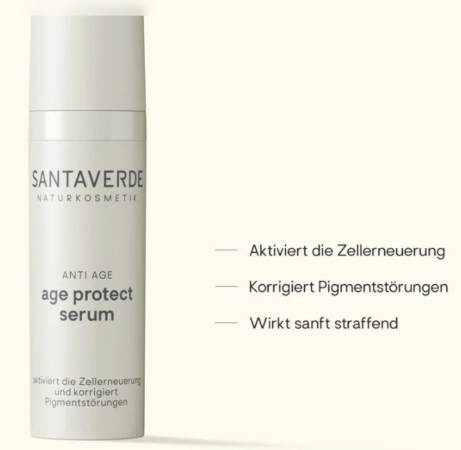 Santaverde Naturkosmetik - age protect serum Straffendes Anti-Age Serum. - 30 ml aktiviert die Zellerneuerung korrigiert Pigmentstörungen wirkt sanft straffend festigt die Hautstruktur