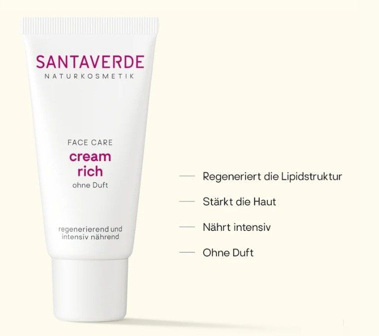 Santaverde Naturkosmetik - cream rich ohne Duft regeneriert die Lipidstruktur stärkt die Haut nährt intensiv ohne Duft