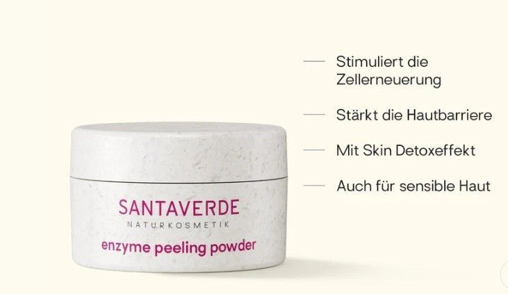 Santaverde Naturkosmetik - enzyme peeling powder Mildes enzymatisches Peeling 23 g stimuliert die Zellerneuerung stärkt die Hautbarriere mit Skin Detoxeffekt auch für sensible Haut