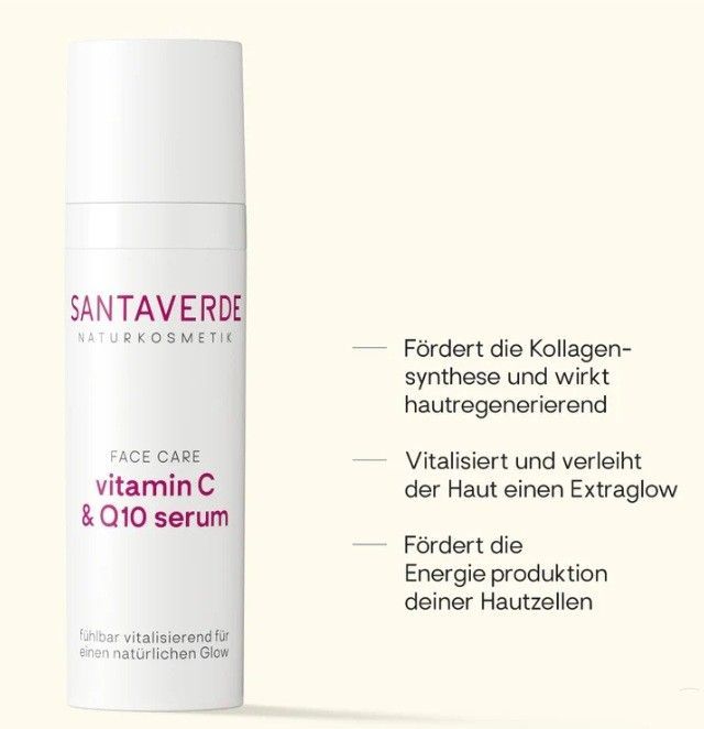 Santaverde Naturkosmetik - vitamin C & Q10 serum - Vitalisierendes Serum 30 ml fördert die Kollagensynthese und wirkt hautregenerierend vitalisiert und verleiht der Haut einen Extraglow fördert die Energieproduktion deiner Hautzellen