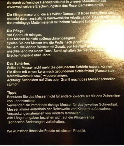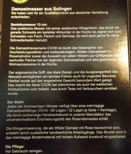 Santokumesser Solingen Damastmesser Messer Rosendamast Fleischmesser
