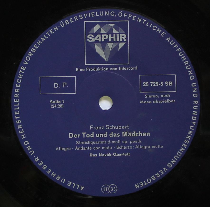 Saphir 25 729-5 SB - Franz Schubert, Novák Quartet - Streichquartett D-moll Op