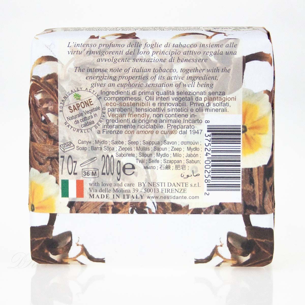 Saponeria Nesti Marsiglia Toscano Tabacco Italiano natürliche Seife 200 g