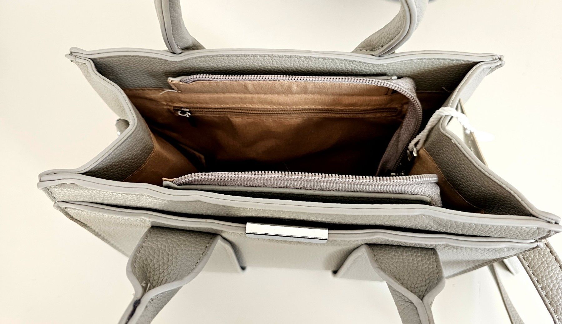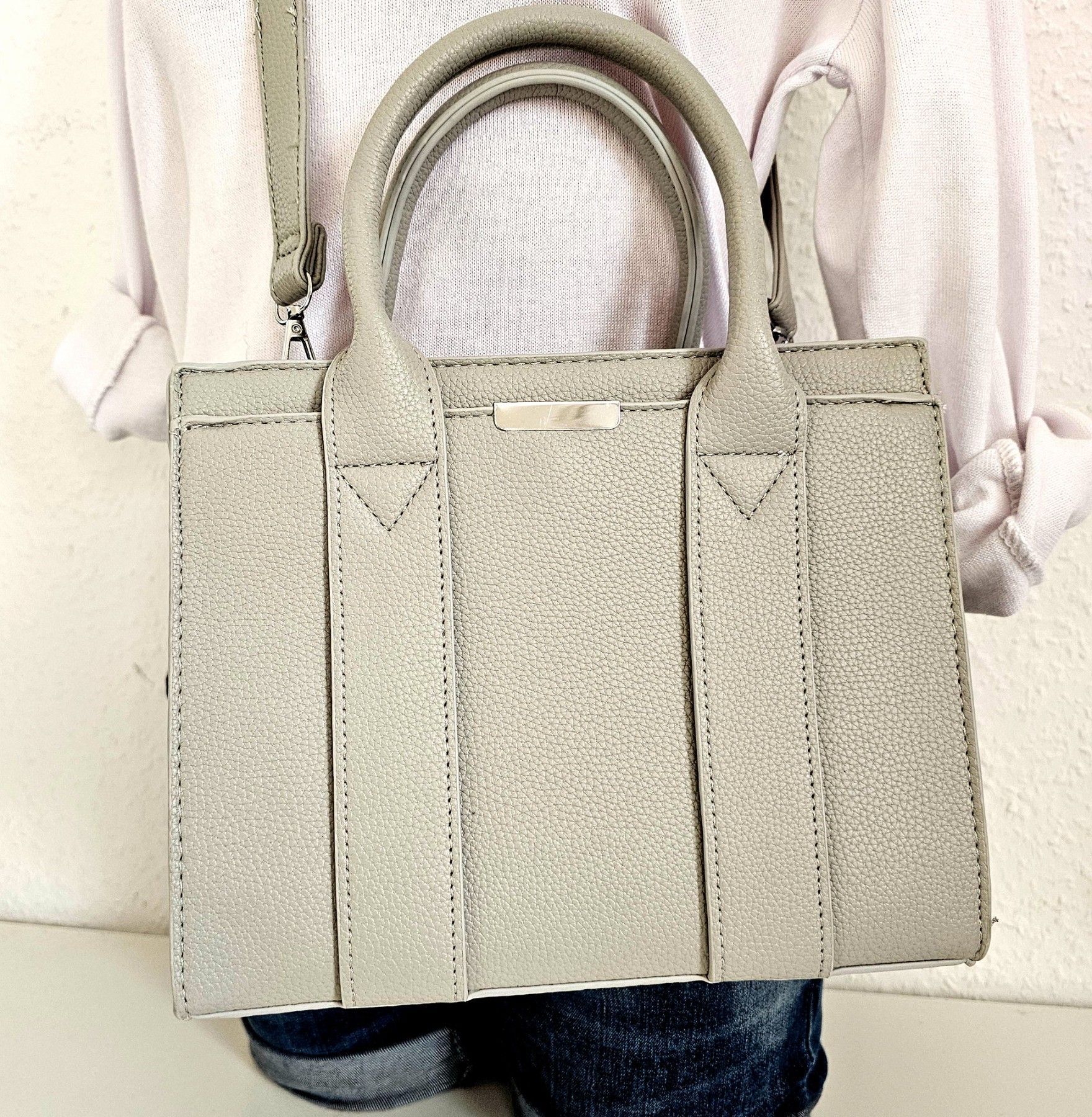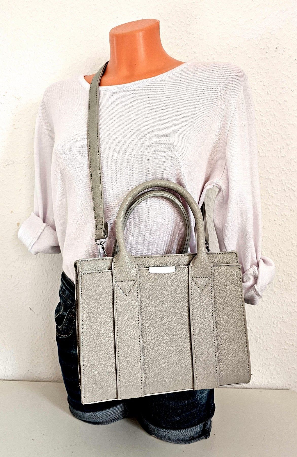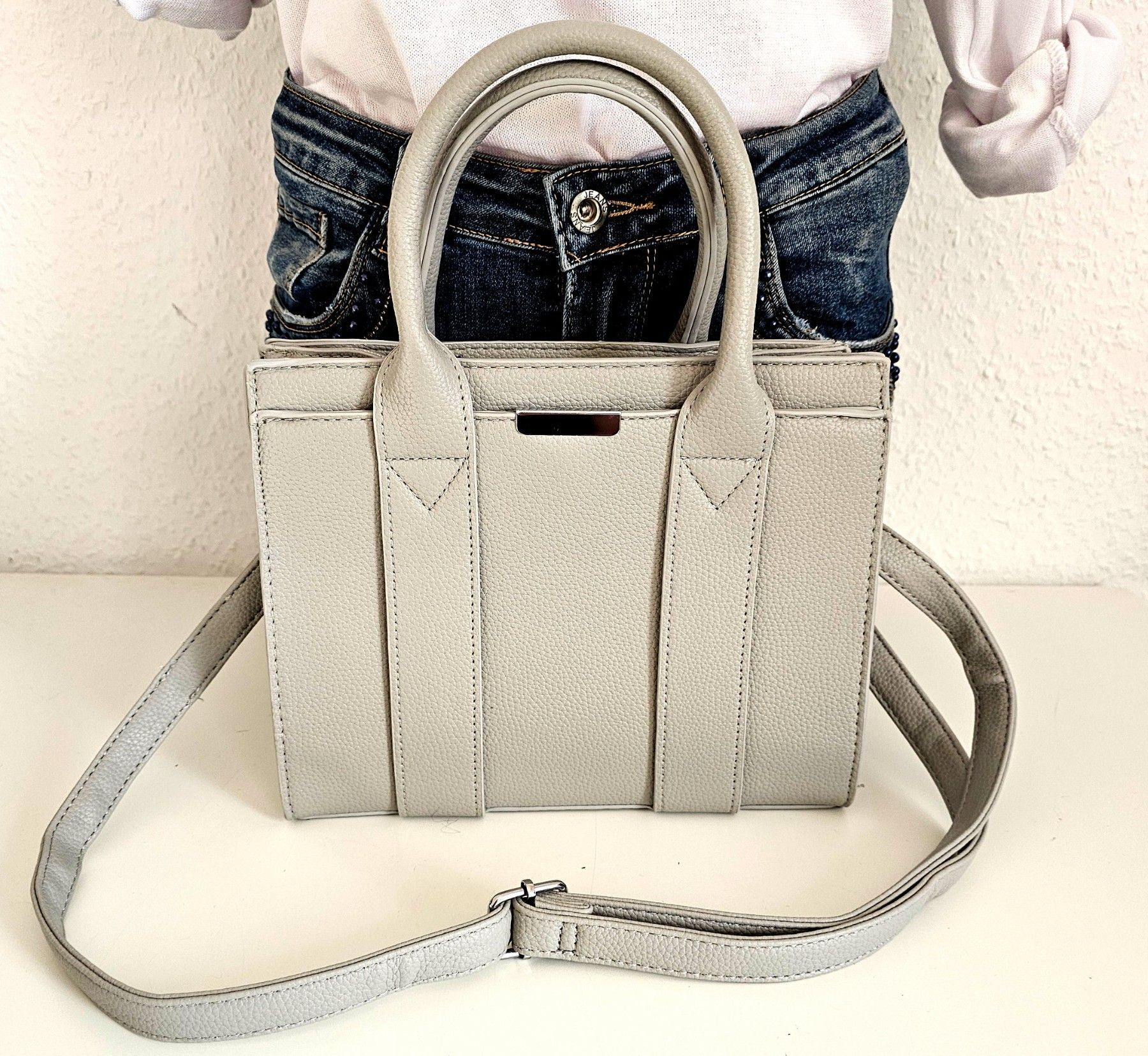 Sara Moda Damen Umhängetasche Tasche Cross Body Bag Gurt und Henkel Hellgrau