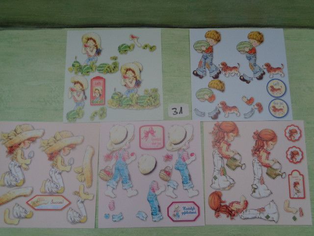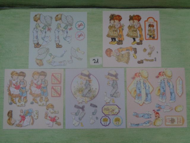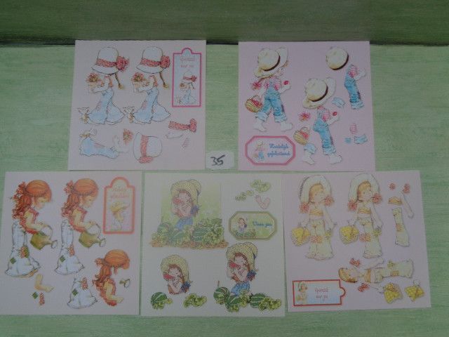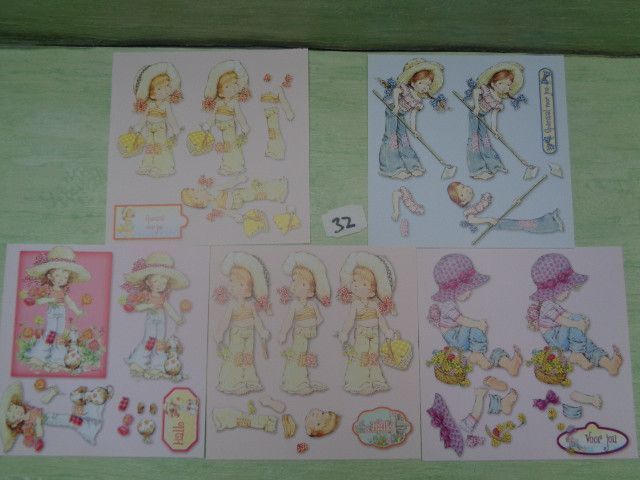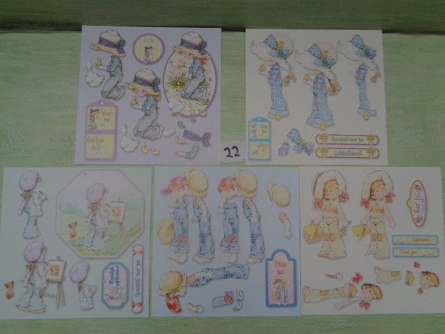 Sarah Kay 3D Schneidebogen 5er Set 15x15cm 70er Jahre Vintage