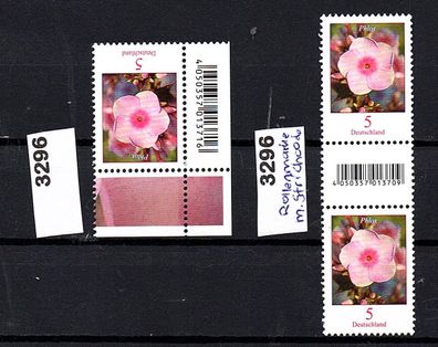 • K611 BRD Bundesrepublik Mi. Nr. 3296 Rand + 1x mit Nr.u. Zwischensteg Blumen o