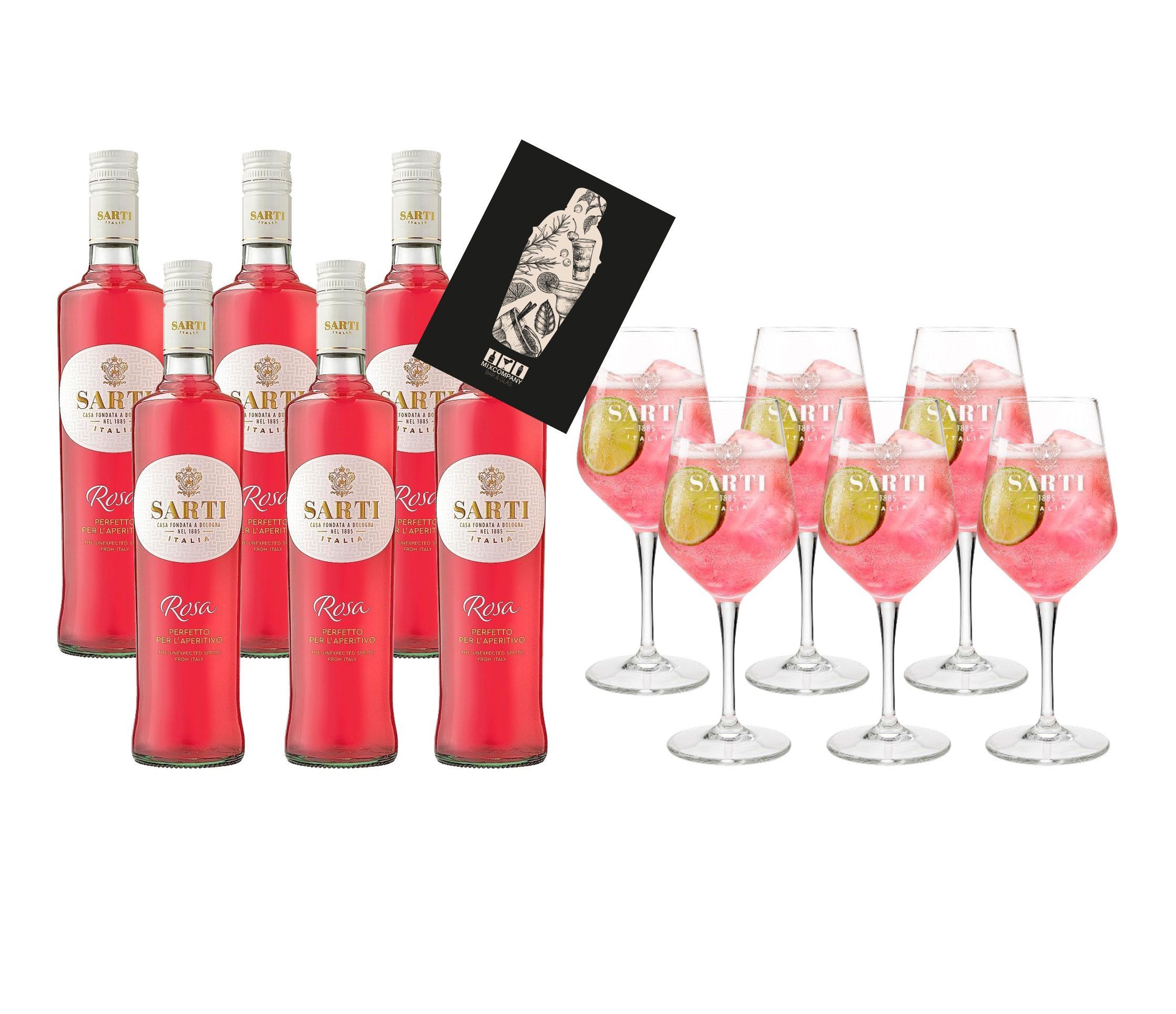 Sarti Rosa XXL Set Aperitif 6x 0,7L (14% Vol) + 6x Sarti Stielglas Ballon Gläse