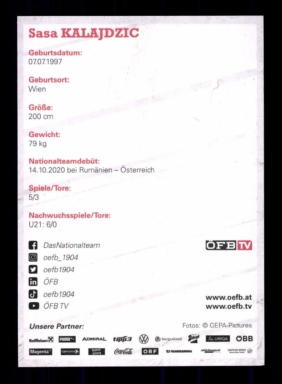Sasa Kalajdzic Autogrammkarte Österreich Nationalmannschaft 2022 Original Sign.