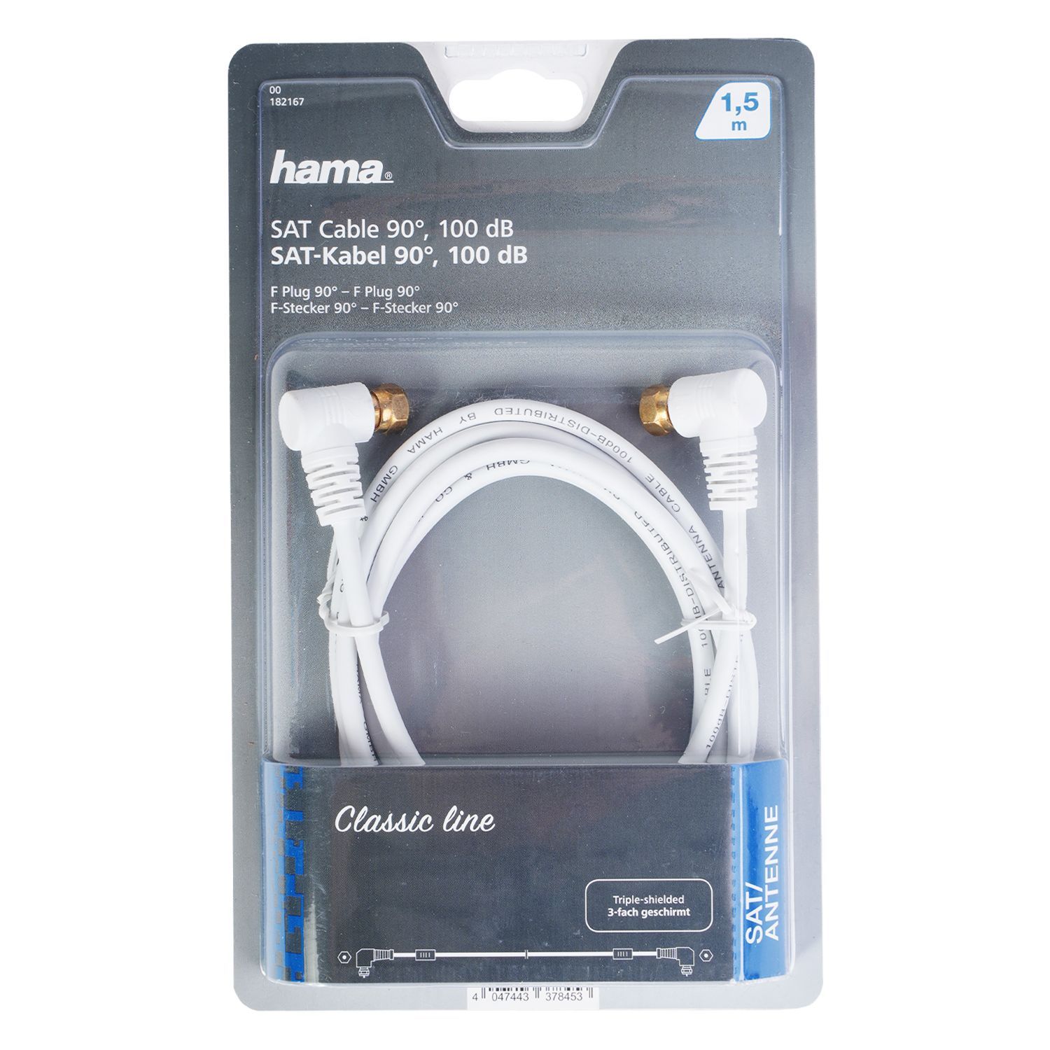 Hama SAT-Anschlusskabel Winkel F-Stecker 1,5m 100dB Filter vergoldet Weiß