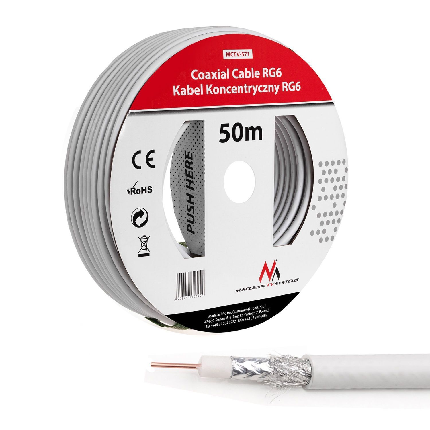 SAT Antennen Kabel 50 Meter Koaxial Kabel RG6 1.0CSS SAT Kabel Maclean NEU