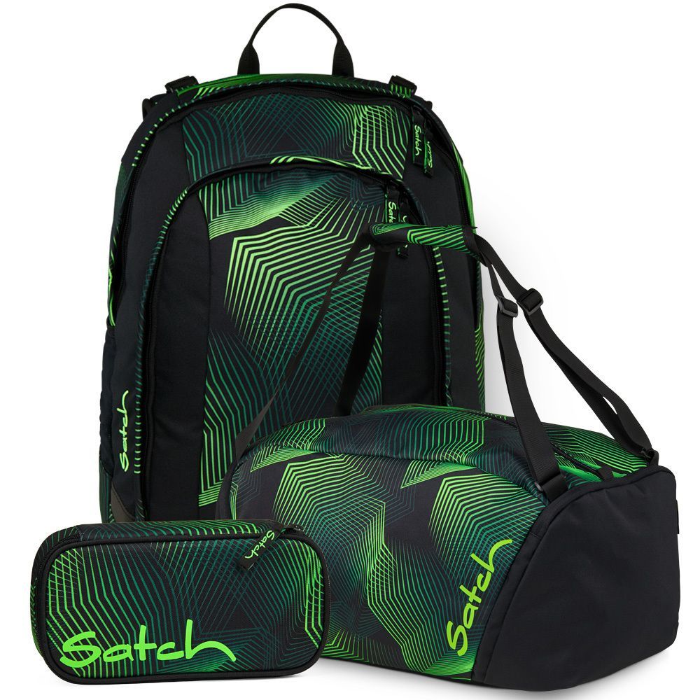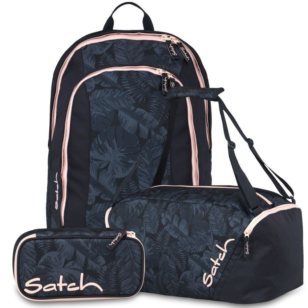 satch Set aus air + Sporttasche + Schlamperbox 26, Midnight Jungle, Mädchen & Jungen
