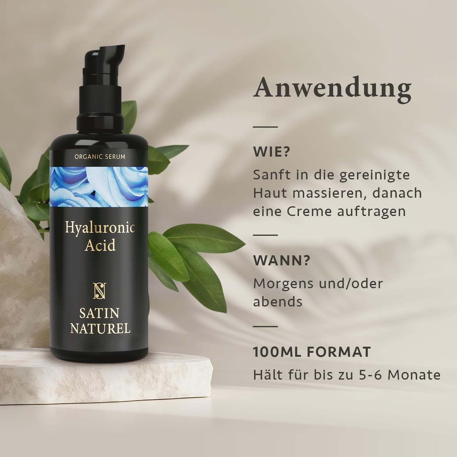 Satin Naturel Bio Hyaluron Serum 100ml Vegan Anti Falten Gesichtsserum Damen