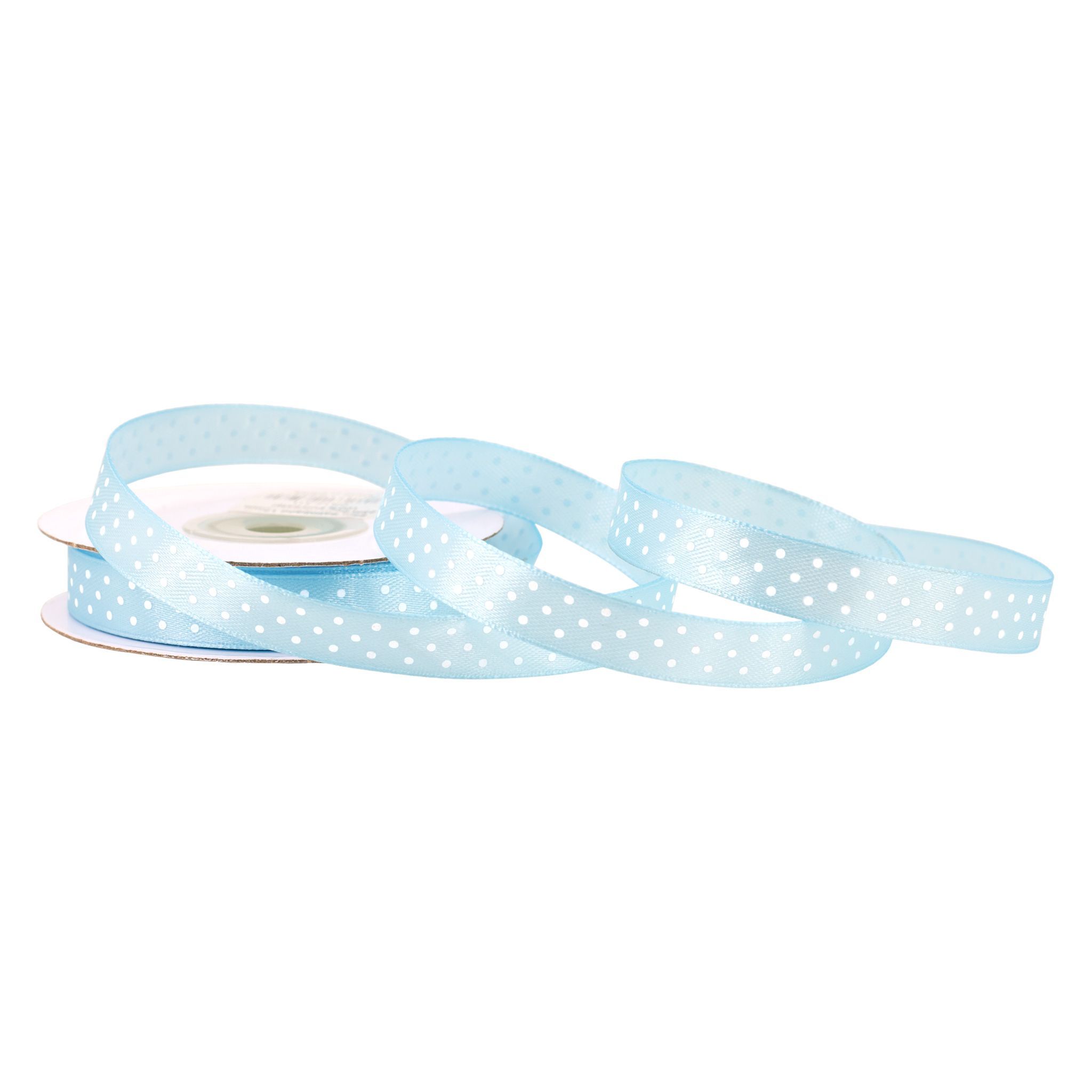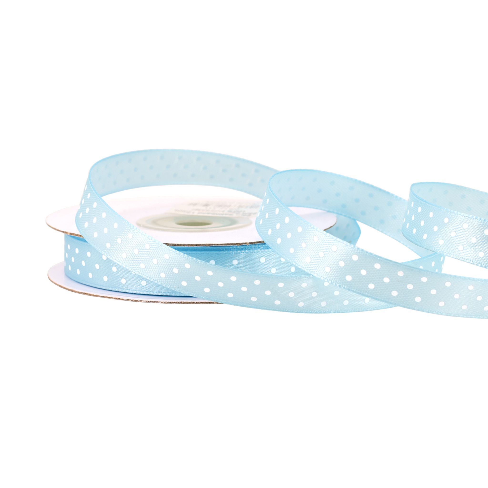 Satinband mit Punkten 12mm x 25m Rolle Hellblau / Weiß