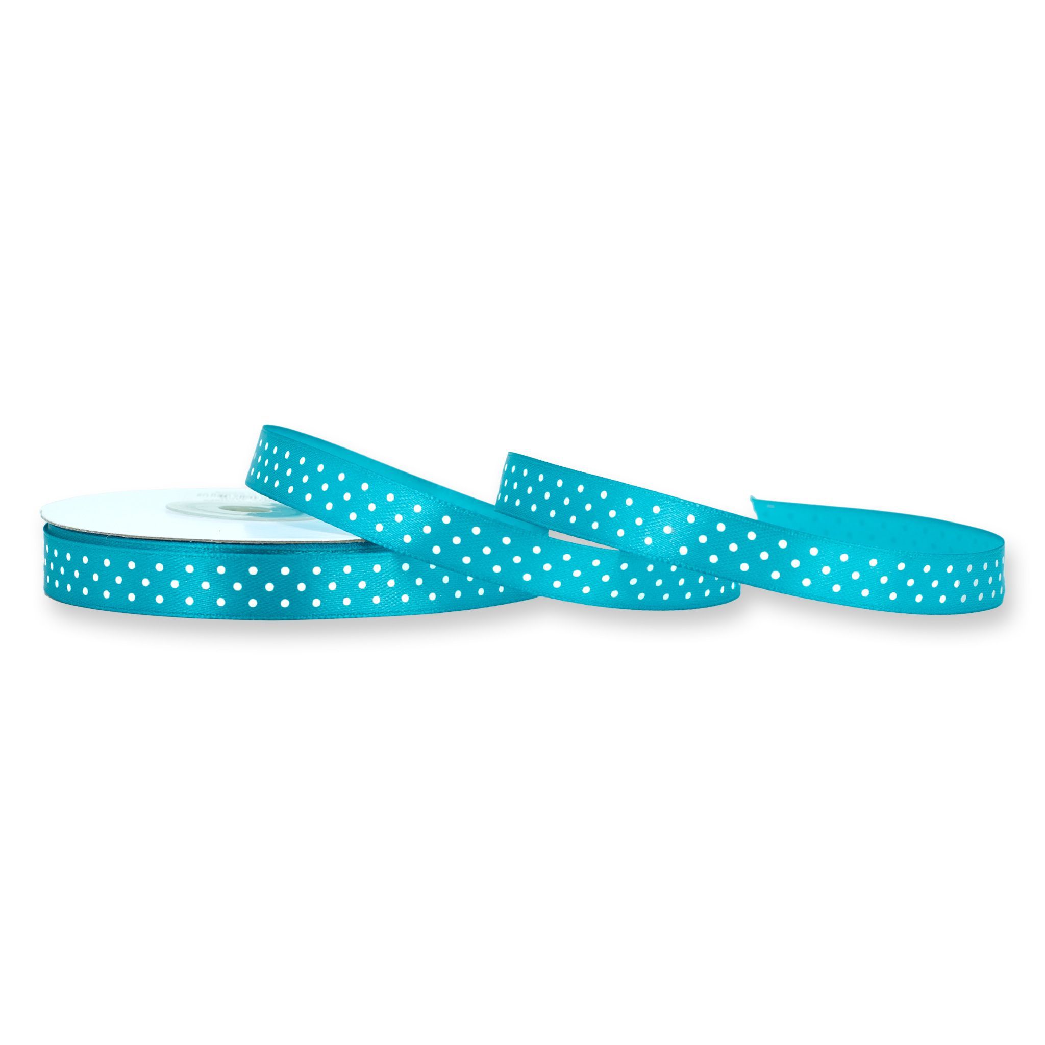 Satinband mit Punkten 12mm x 25m Rolle Türkis / Weiß