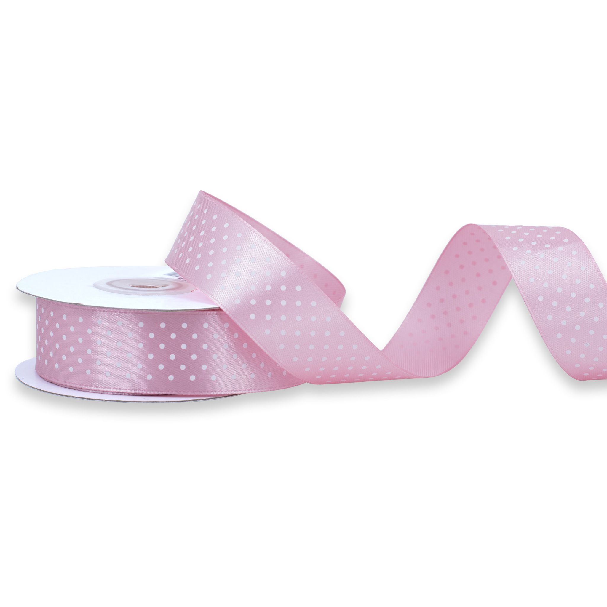 Satinband mit Punkten 25mm x 25m Rolle Altrosa / Weiß