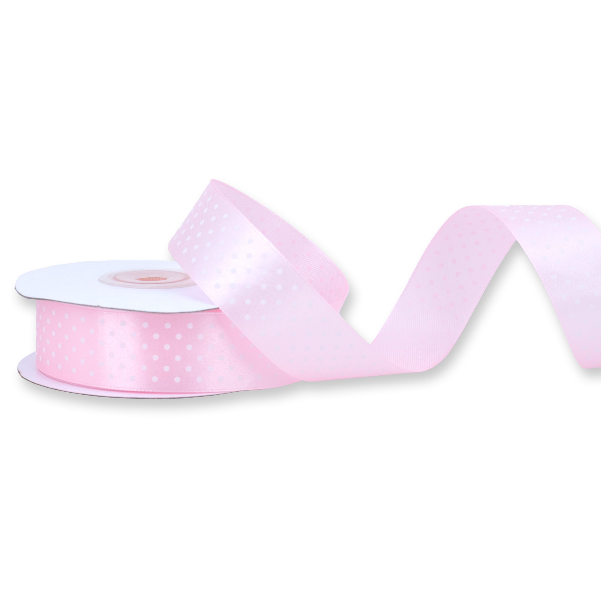 Satinband mit Punkten 25mm x 25m Rolle Hellrosa / Weiß