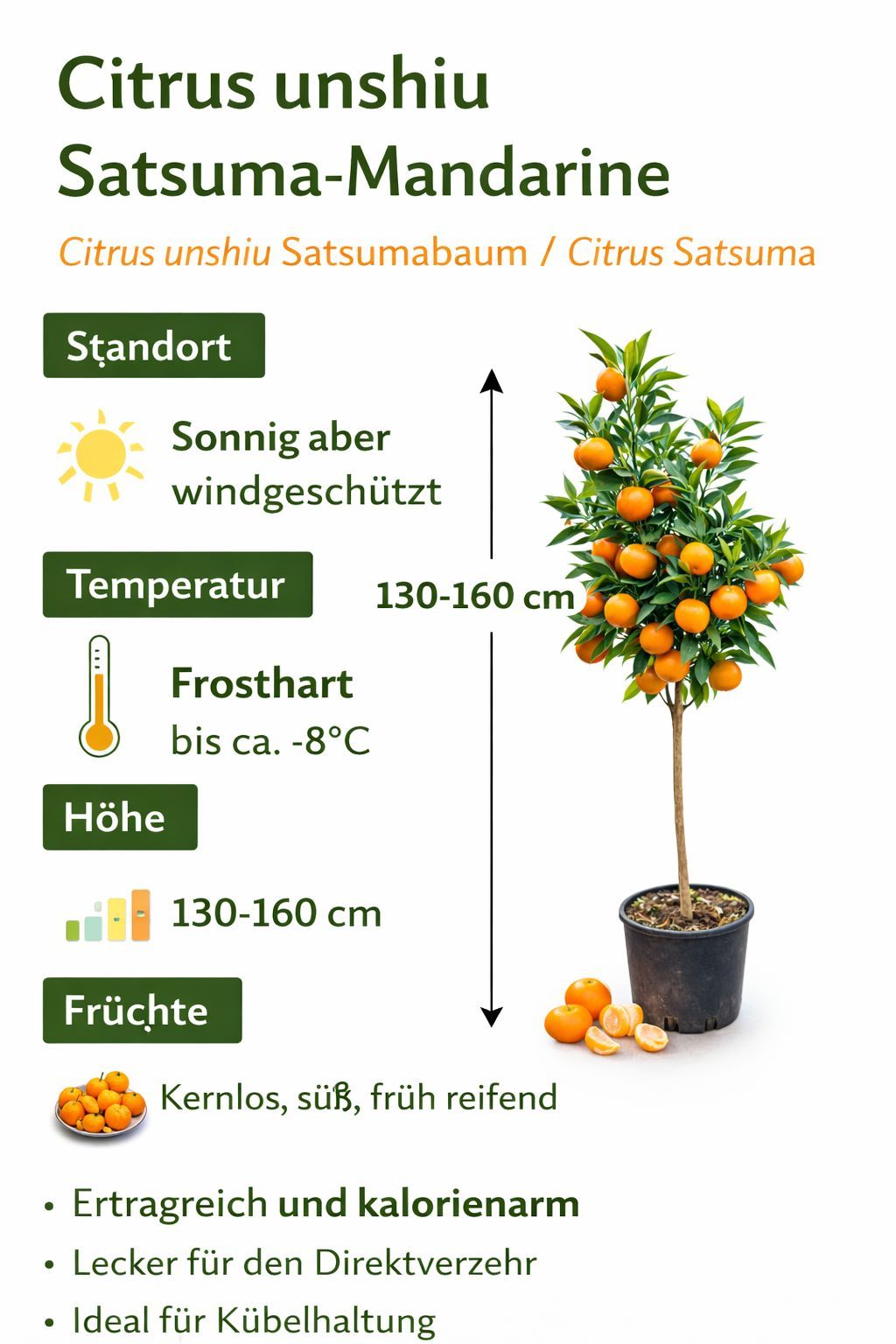 Satsuma Mandarinenbaum 130-160 cm Citrus unshiu winterharte Mandarine