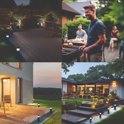 Satz mit 4 Stück Solarlampen LED-Gartenlampen AURORA 40 cm Kaltweiss Schwarz
