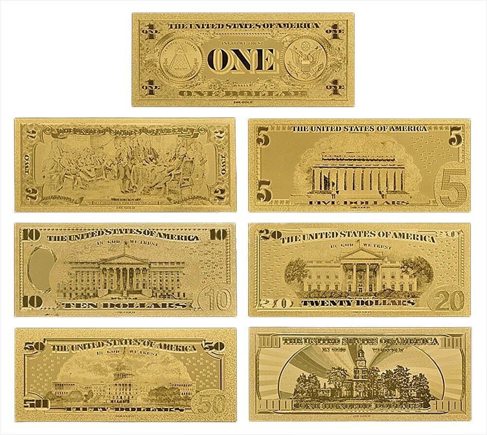 Satz mit 7 Scheinen - Dollar Banknoten - 24 K vergoldet / Folie/ Nachdruck - (CM1804)