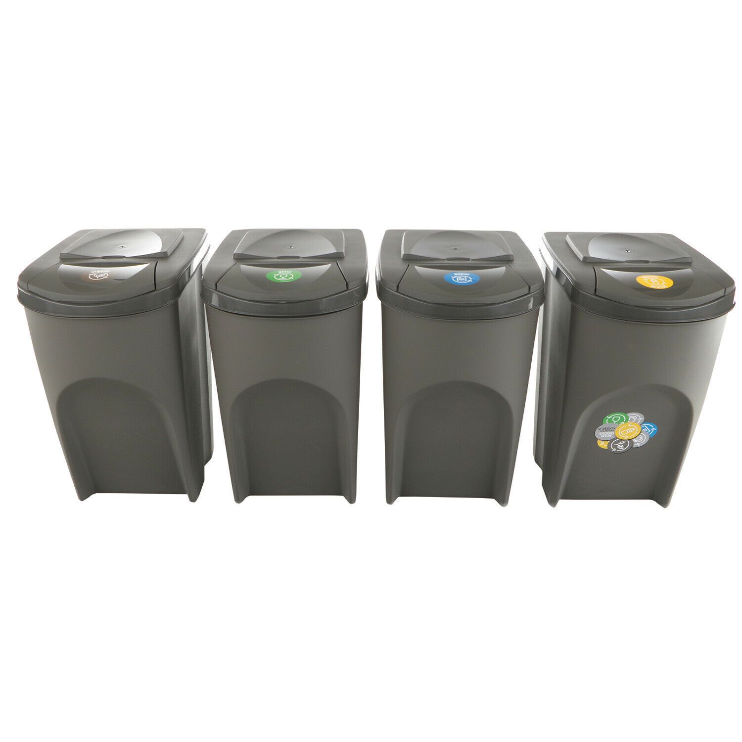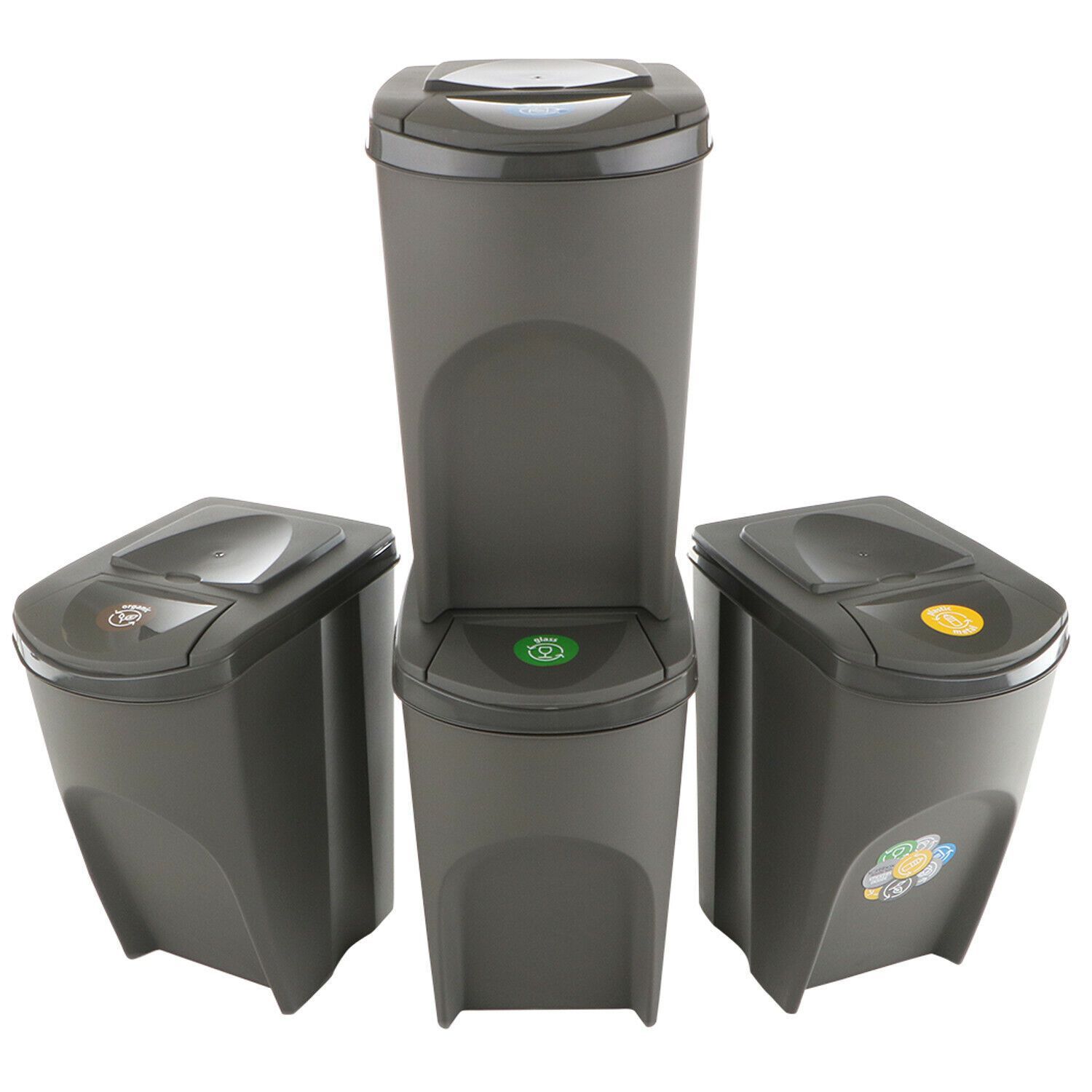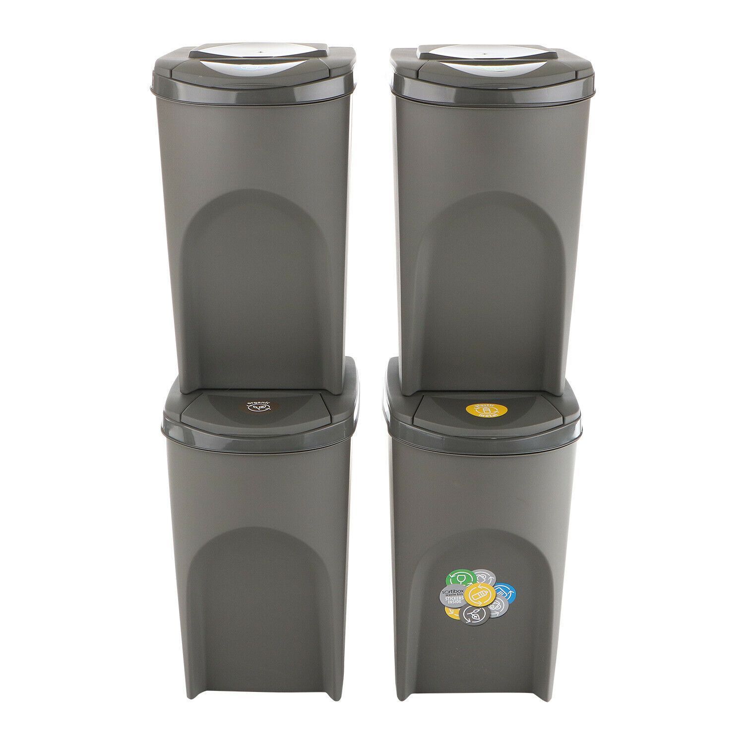 Satz Papierkorbbehälter 4x35L Sortibox 4x35L graue Abfallsammelbehälter Wohnen