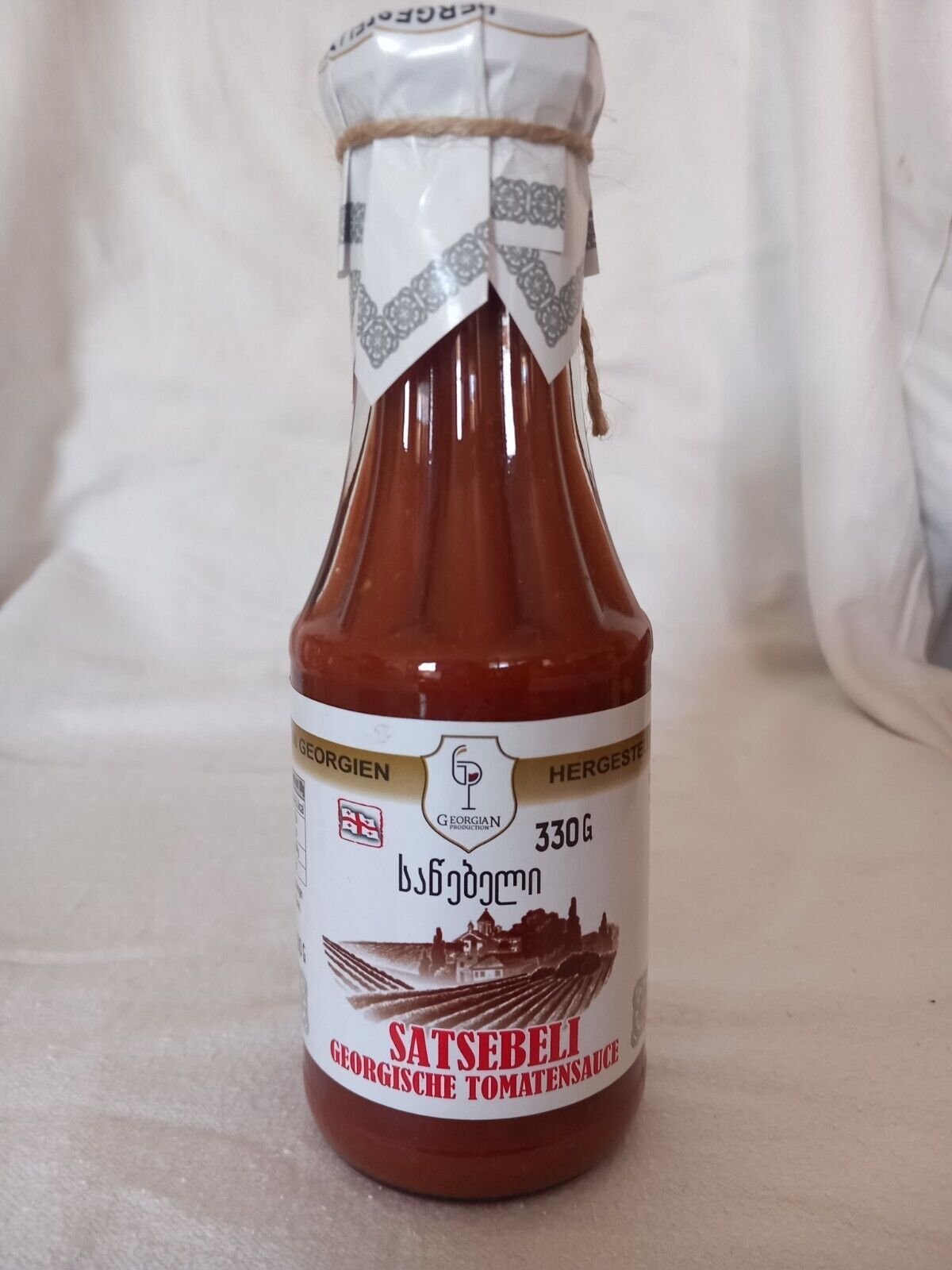 Sauce - Satsebeli – Georgische Tomatensauce 330 ml - Georgien Würzige pikante Tomatensauce aus Georgien Inhalt Füllmenge: Euro 310 ml Geschmack: Euro Würzig Euro Pikant Passt am Besten zu: Euro Gebratenem oder gekochtem Geflügel Euro Grillfleisch Euro Lamm Zutaten: Euro Tomatenpaste Euro Knobl