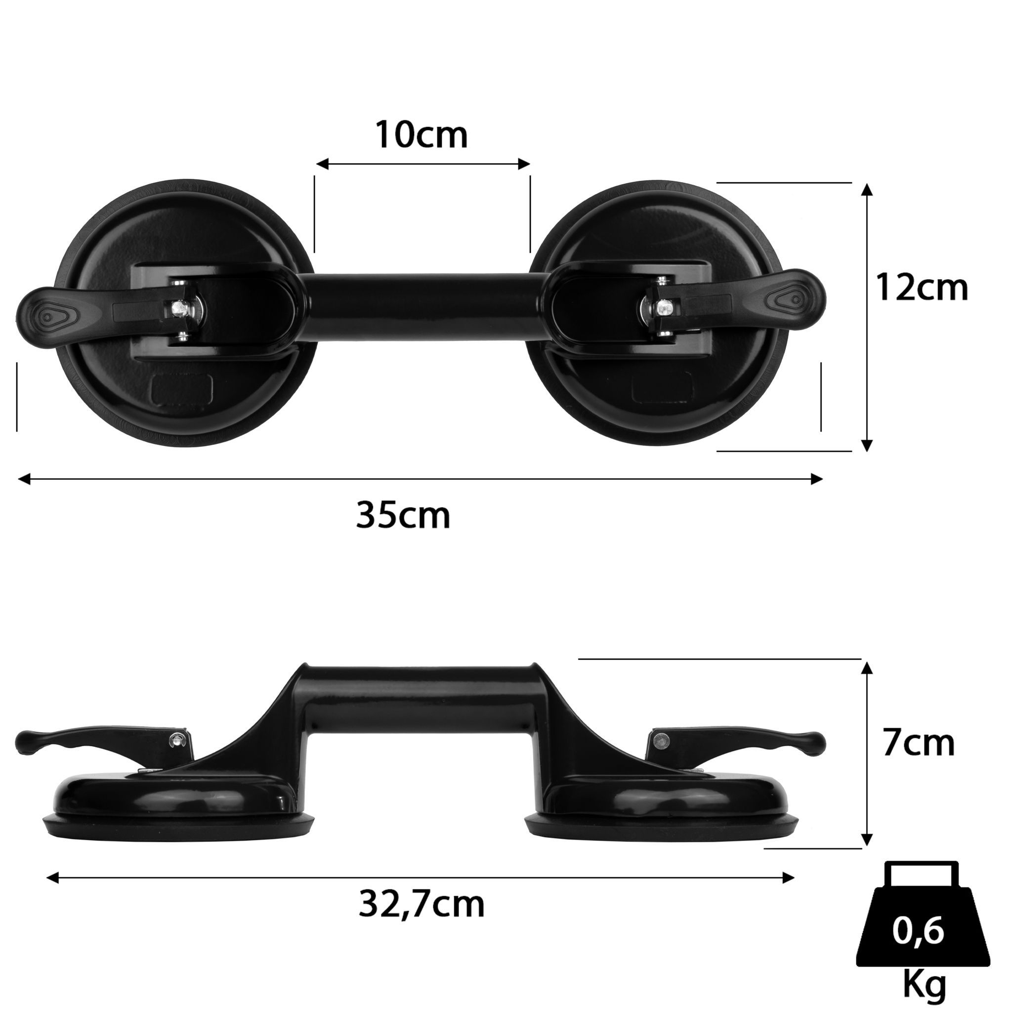 Saugheber bis 100 kg mit 2 Saugnäpfen schwarz Aluminium