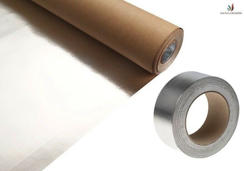 Sauna Aluminiumfolie 30m² Aluminium Klebeband 120°C Alu Dampfsperre für Saunabau