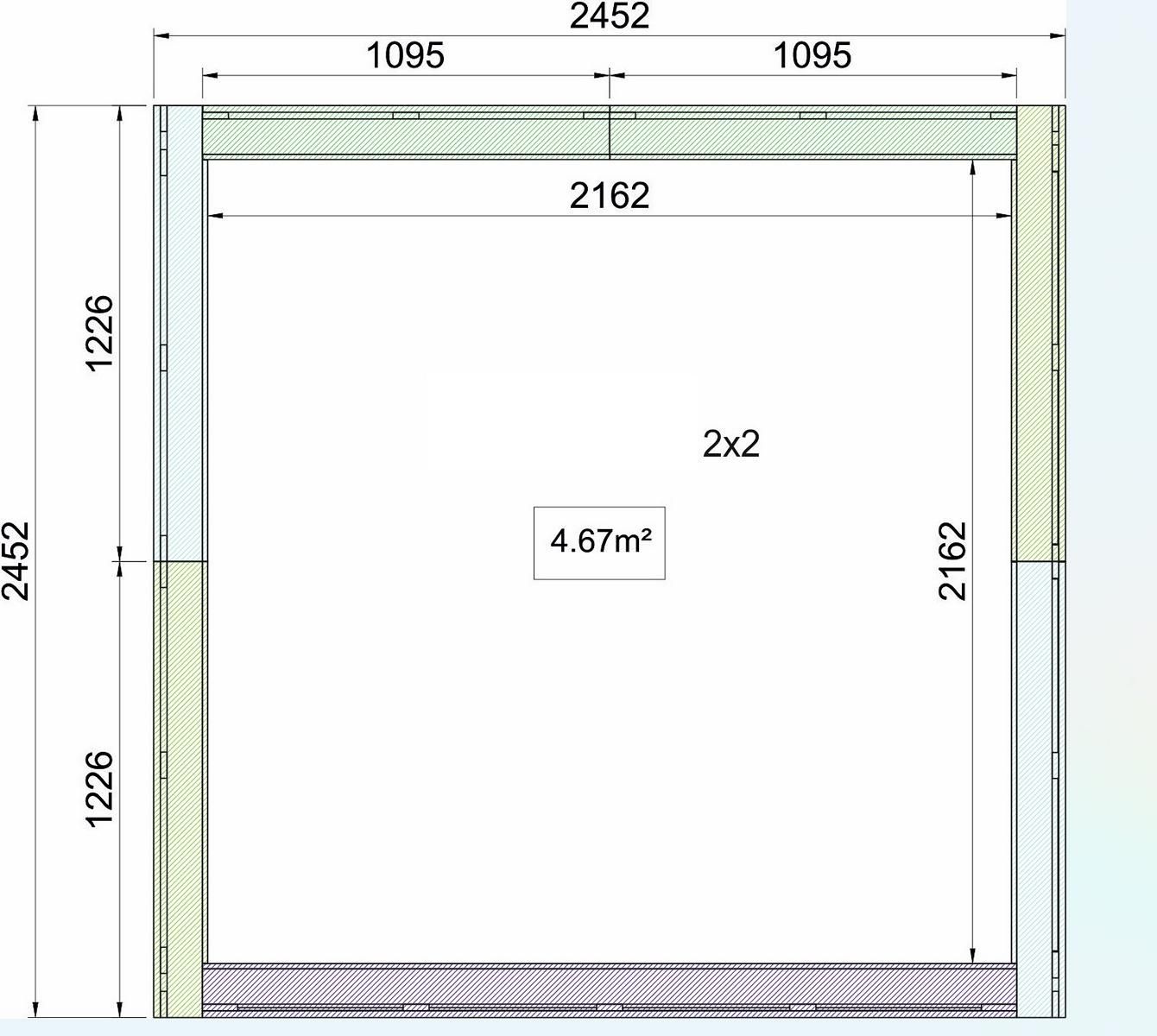 2.45 x 2.45 x 3.18 m