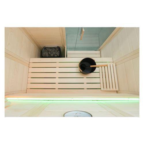 • Saunakabine Alaska Mini Infra+ Set aus massiver Fichte 160x110x204cm