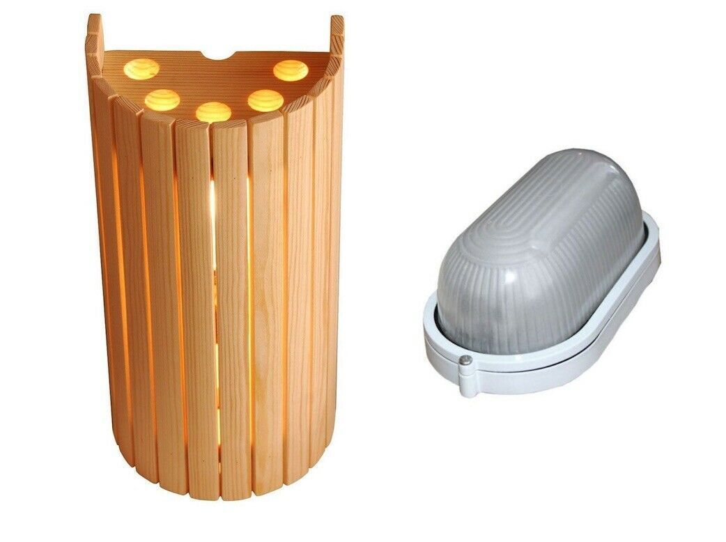 Saunaleuchte Set Holzblendschirm Nadelholz + Feuchtraumleuchte 2tgl. Set