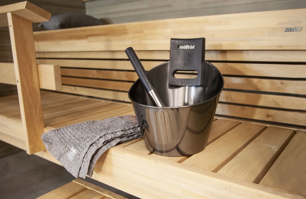 Saunazubehör Harvia Saunaset Stahl schwarz Das Sauna-Zubehörset in schwarz besteht aus einem Eimer und Schöpfkelle aus Edelstahl, einem gut lesbaren Thermo- und Hygrometer. Das Zubehörset verleiht Ihrem stilvollen Einrichtungskonzept das gewisse Etwas. Edelstahl ist gegenüber Änderungen der Feuchtig