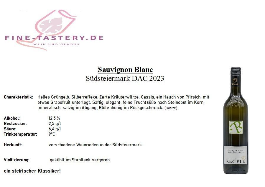 Charakteristik: Helles Grüngelb, Silberreflexe. Zarte Kräuterwürze, Cassis, ein Hauch von Pfirsich, mit etwas Grapefruit unterlegt. Saftig, elegant, feine Fruchtsüße nach Steinobst im Kern, mineralisch-salzig im Abgang, Blütenhonig im Rückgeschmack. (Falstaff)