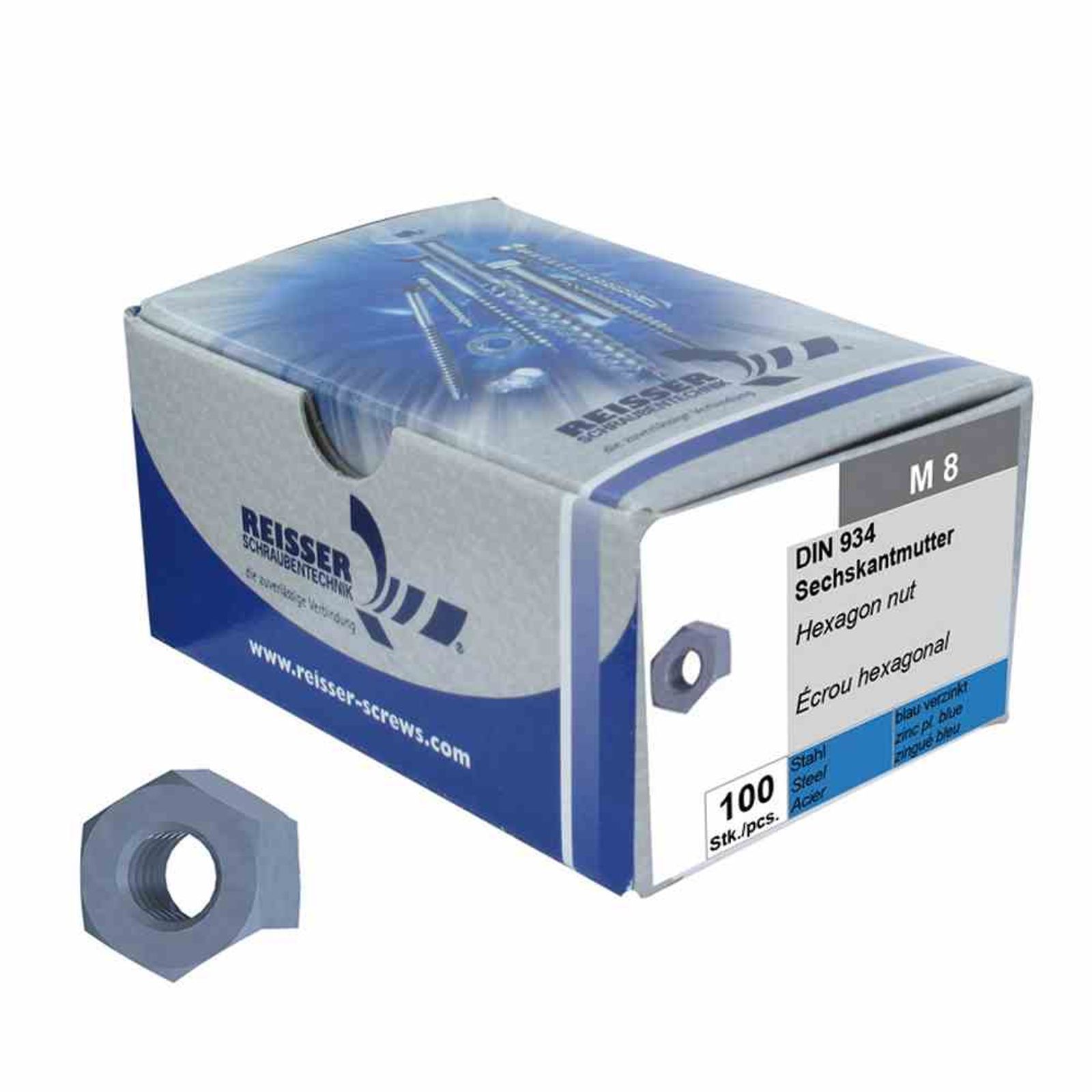 SB Sechskantmutter verzinkt, 4 mm Paket 100 Stück Stahl, verzinkt, blau passiviert