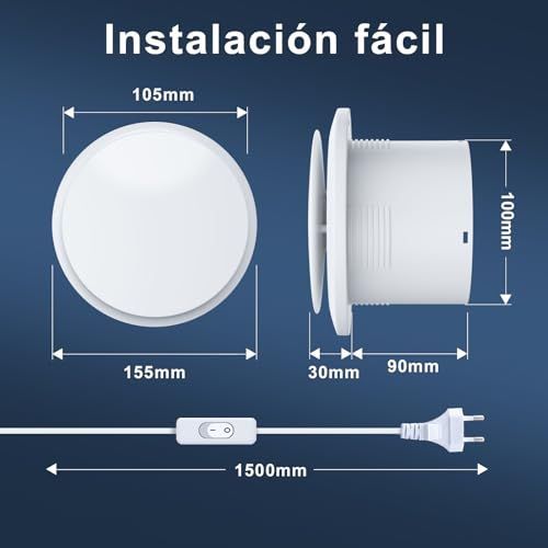 Über dieses Produkt EuroEuroEuroEuro Schnelle Rückerstattung in weniger als 30 Tagen, 24 Monate Garantie und 24 7-Service verfügbar Euro 100 mm Badezimmer-Abluftventilator mit Schalter: Praktisch und sofort einsatzbereit mit einem 1,5 m langen Kabel. Kompakt, leicht und einfach an Wänden, Decken ode