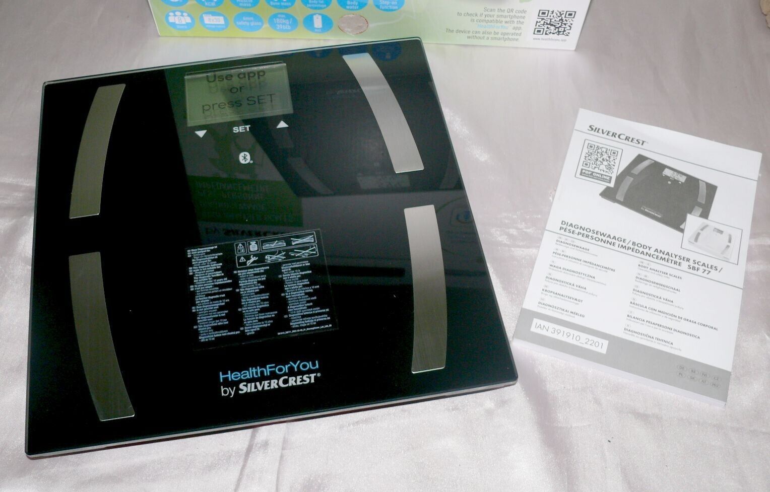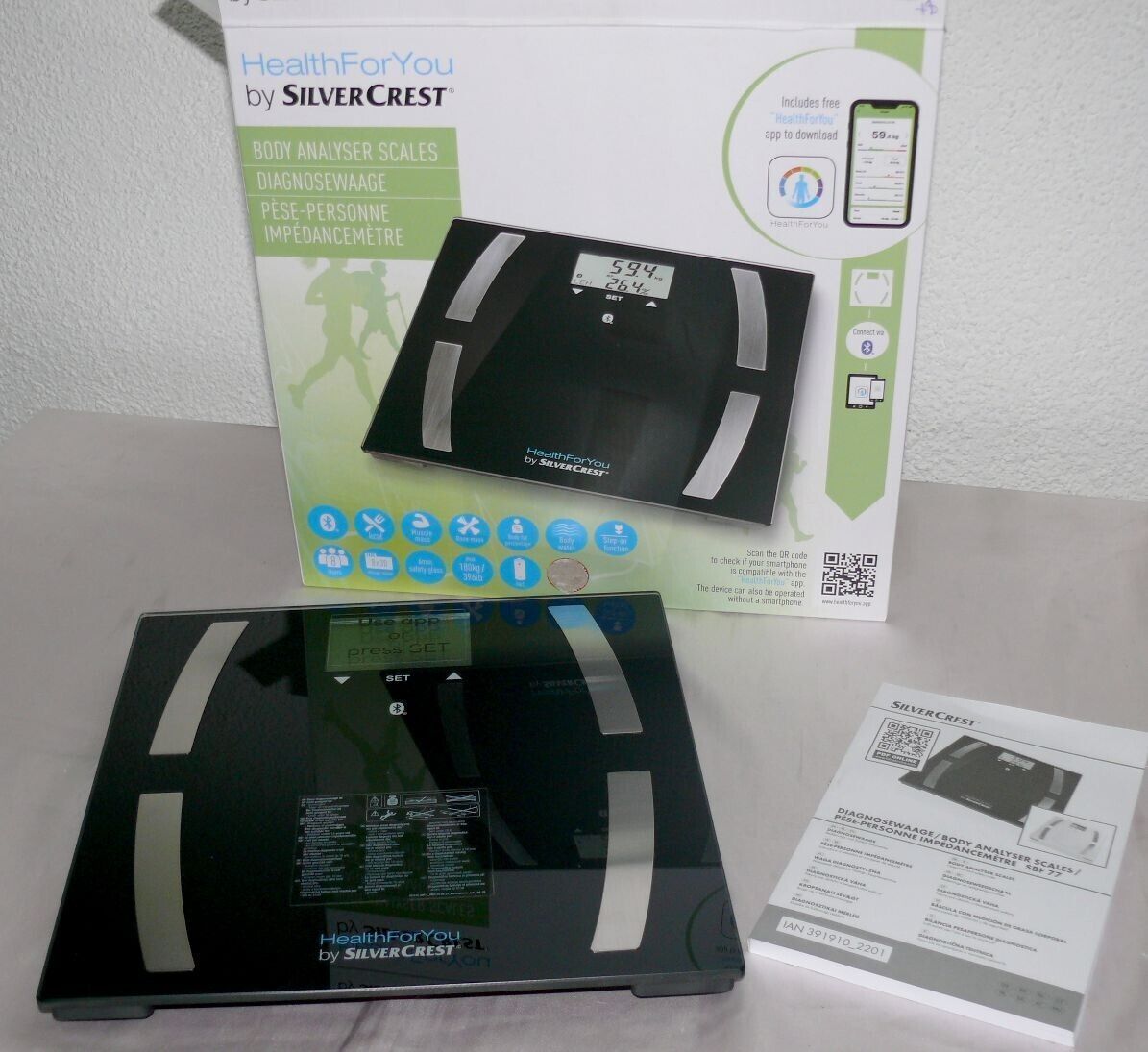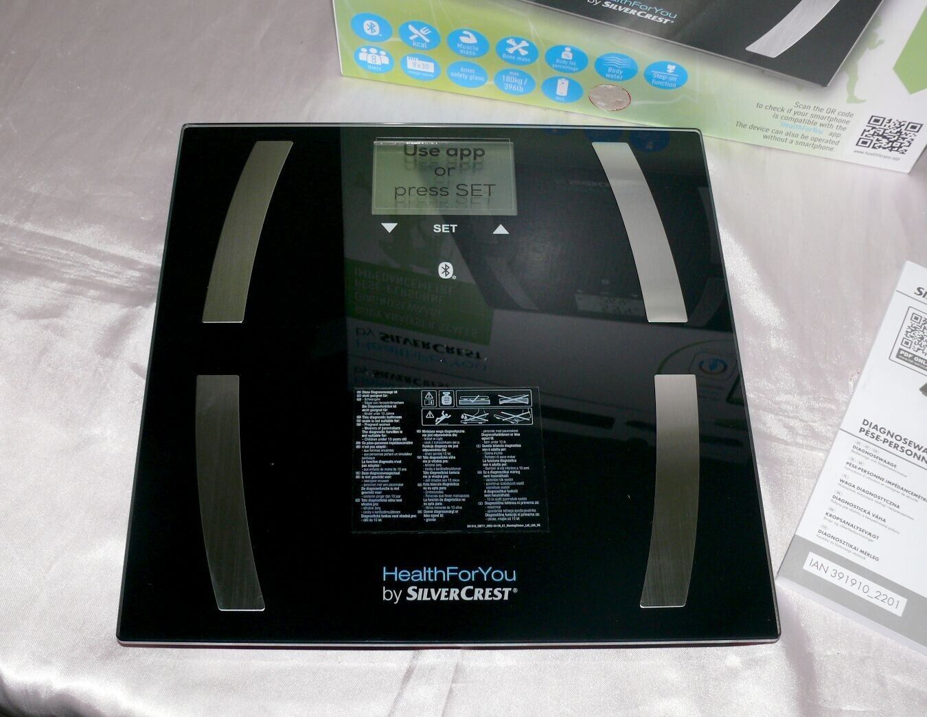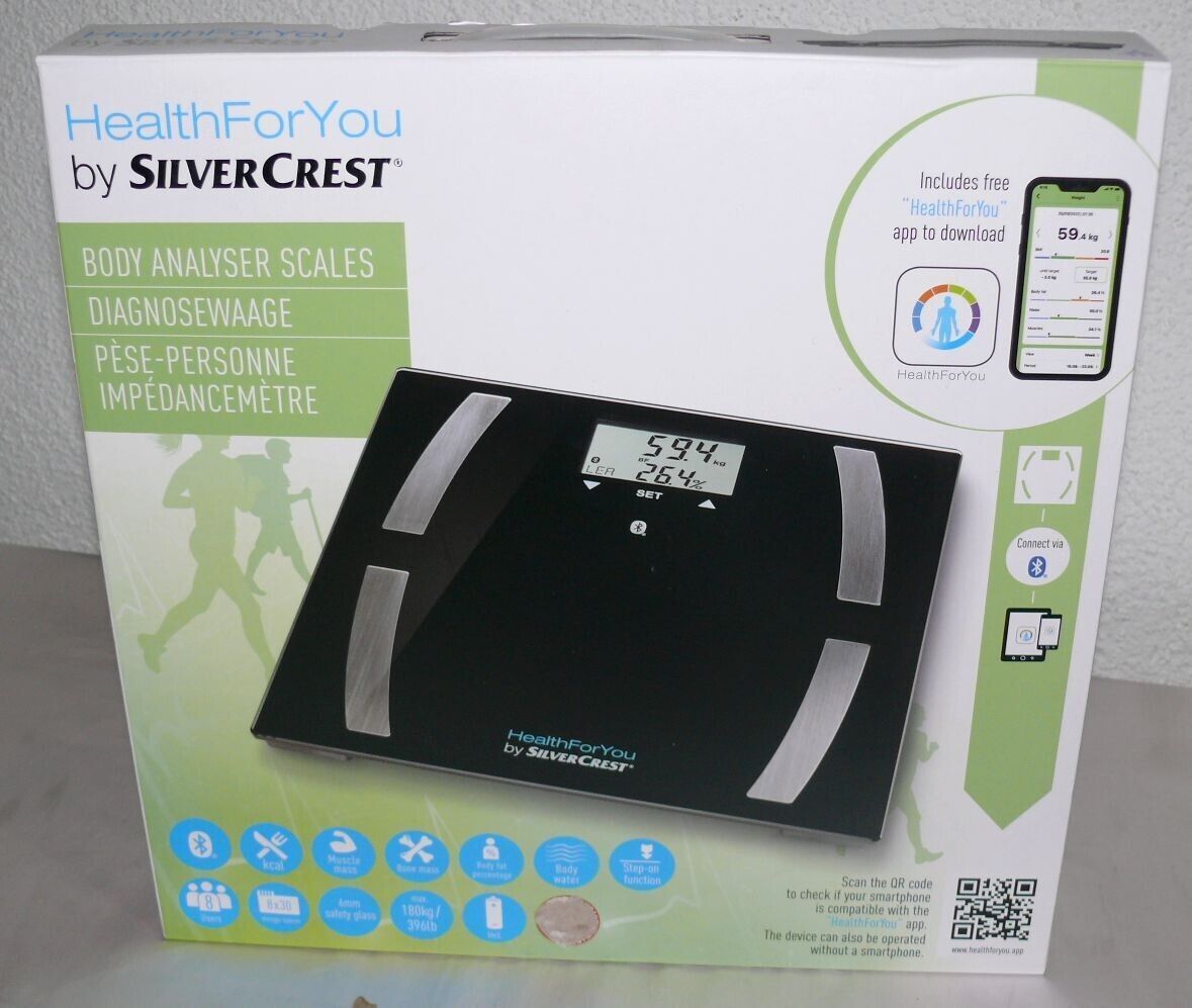 SC SBF77 Glas Körperanalyse Diagnose Fitness Gewicht Waage APP 180KG BT Black