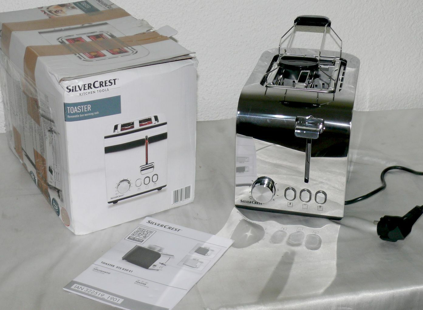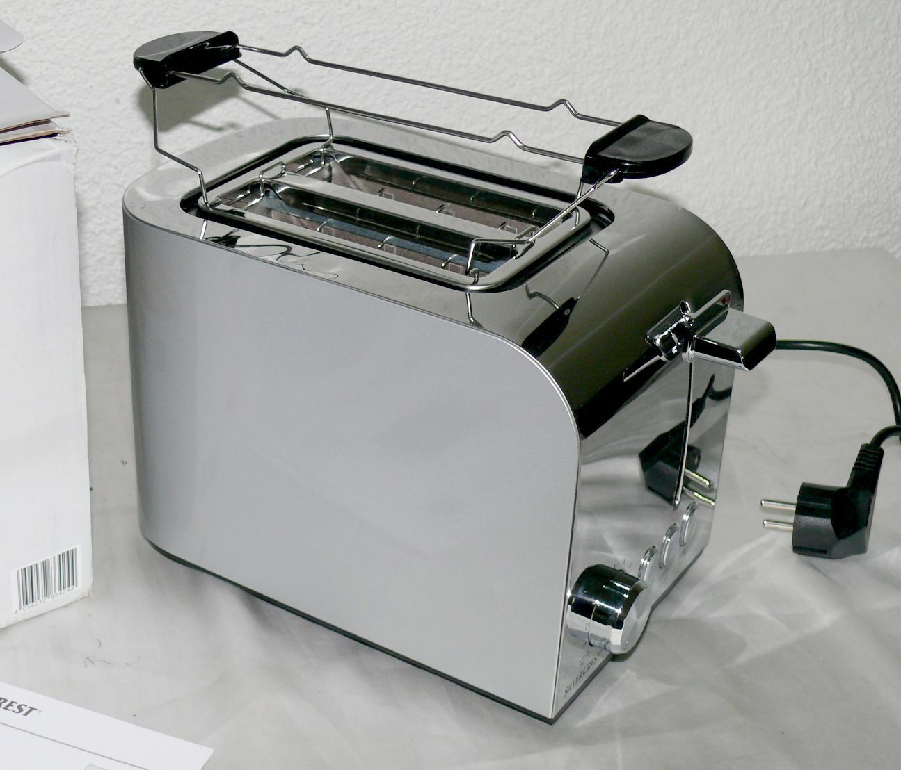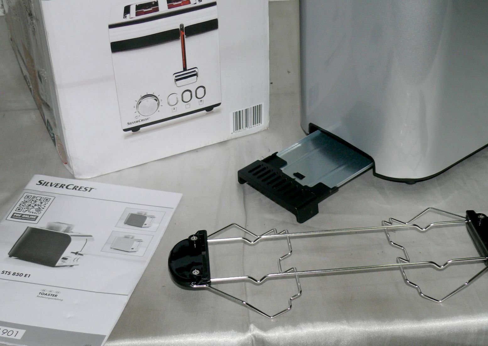 SC STS850E1 Designer Toaster Doppelschlitz 850W 6 Stufen Auftau Edelstahl Silber