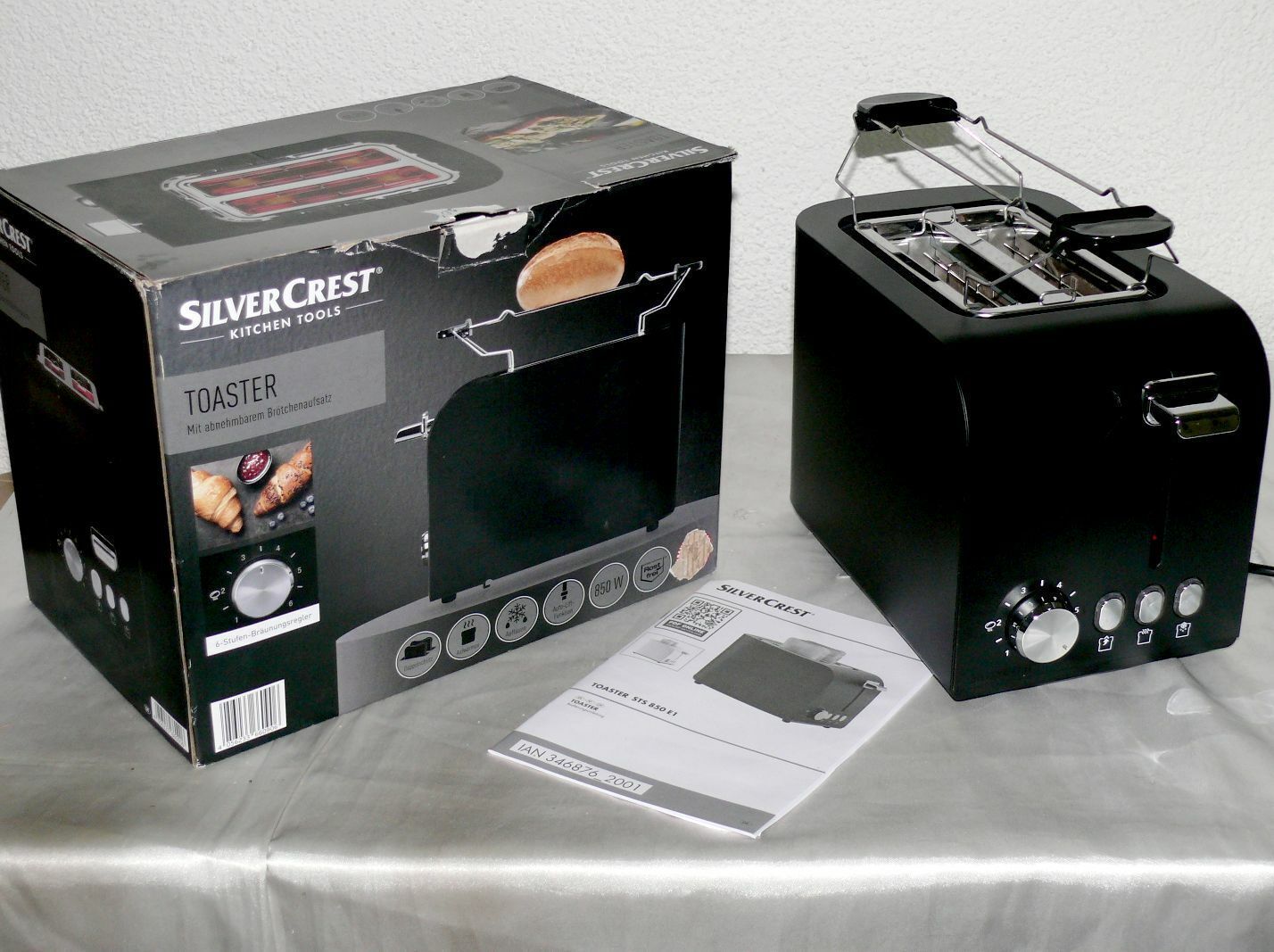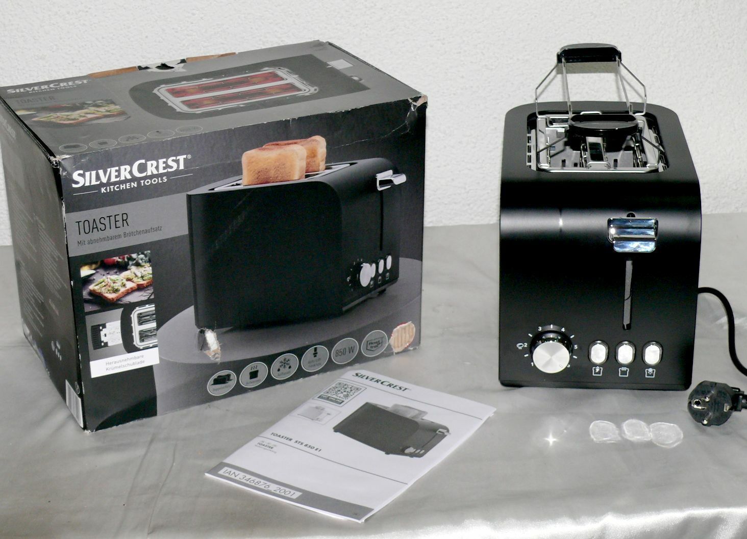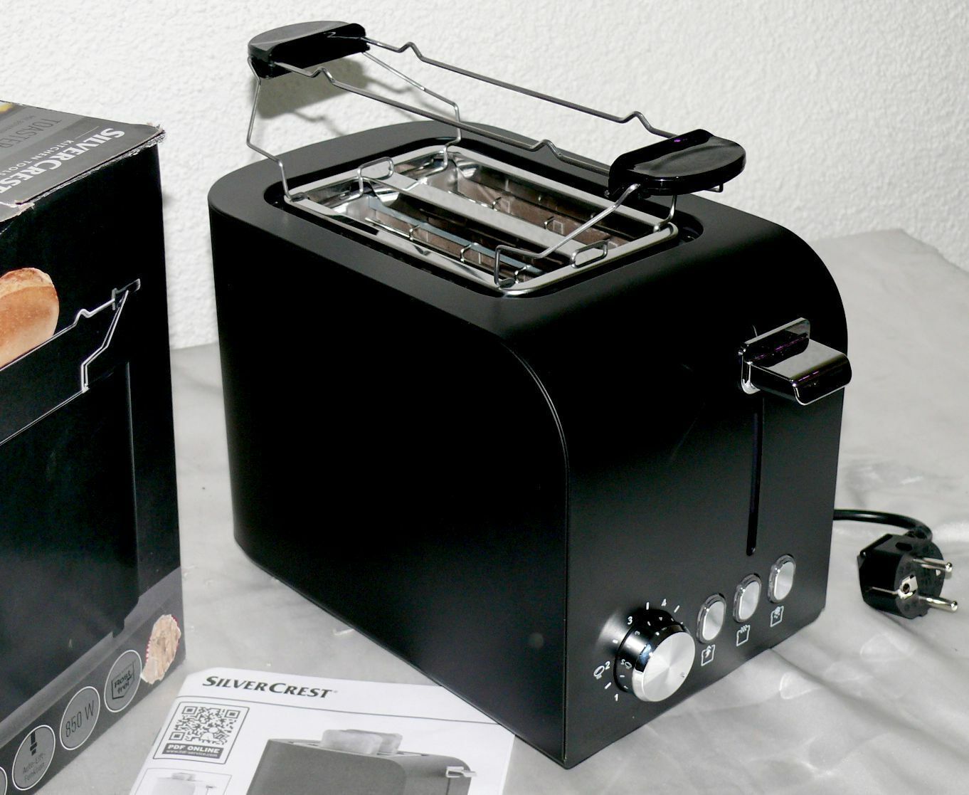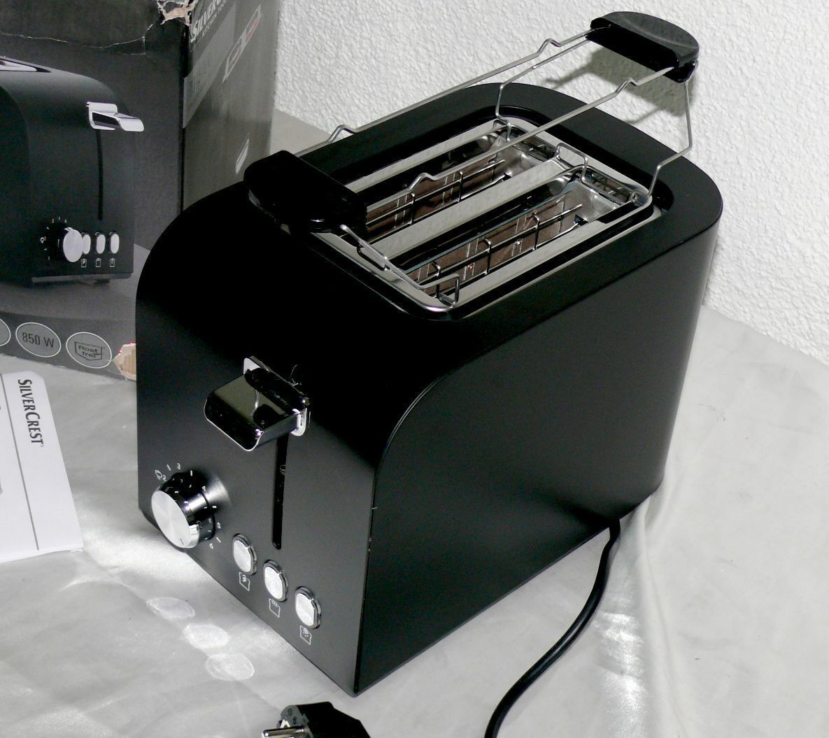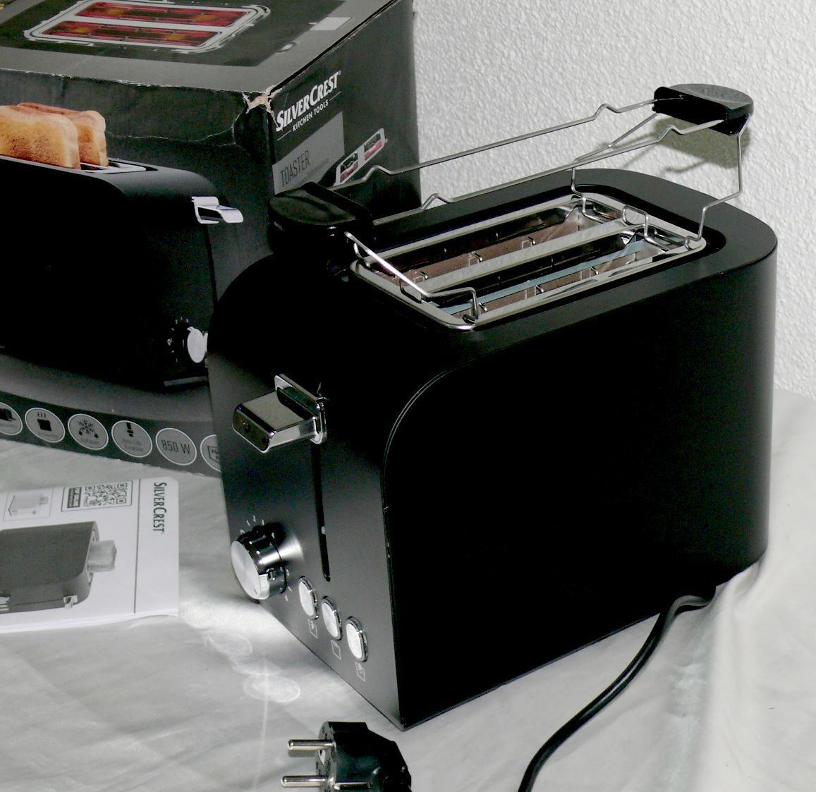 SC STS850E1 Designer Toaster Doppelschlitz 850W 7 Stufen Auftau Metall Schwarz