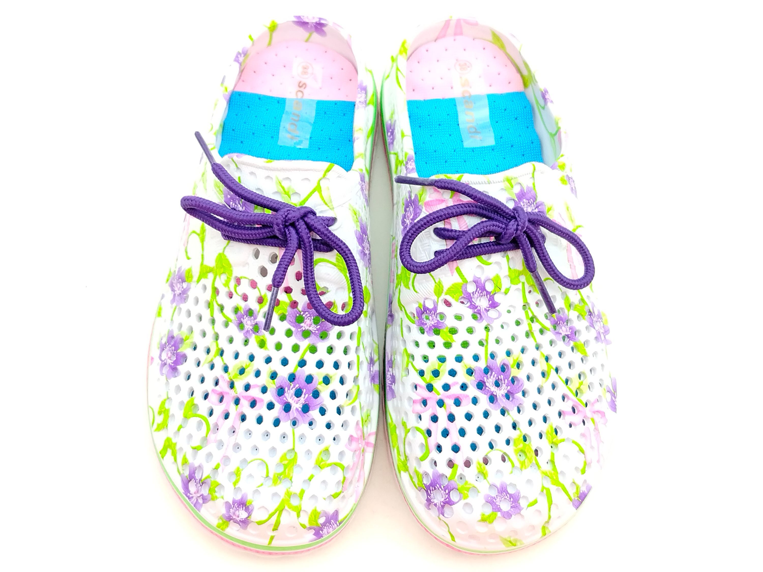 scandi Damen Glogs weiß kombiniert dunkellila Schnürung
