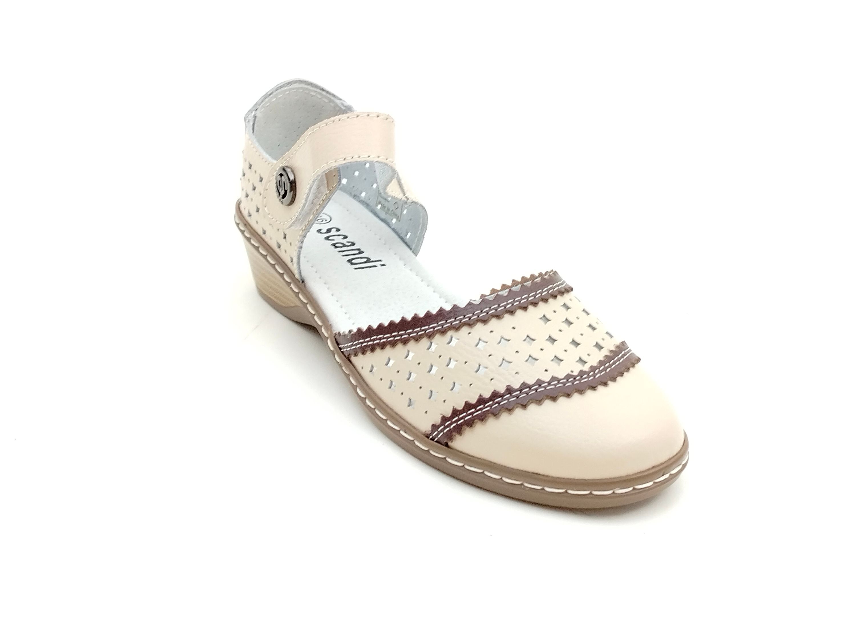 scandi Damen Klett Sandale Zehen und Ferse geschlossen kleiner Keil beige braun