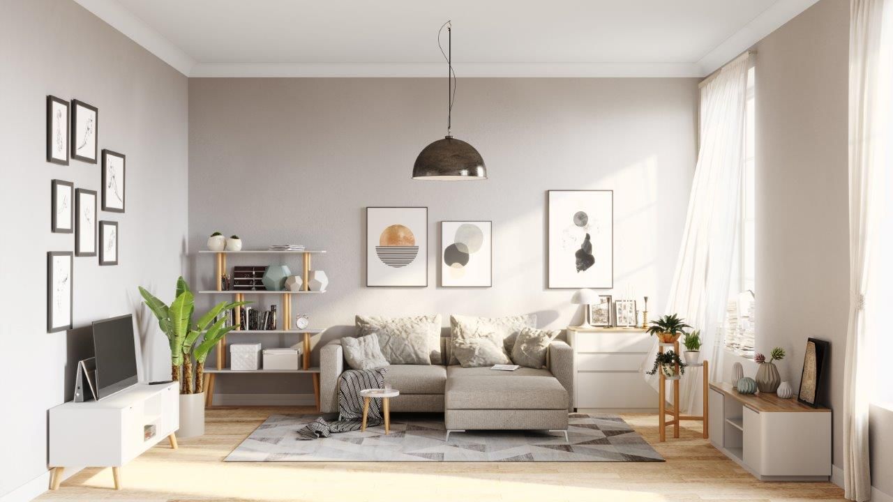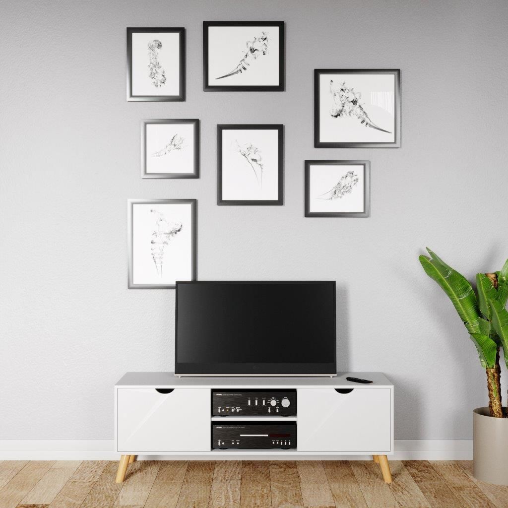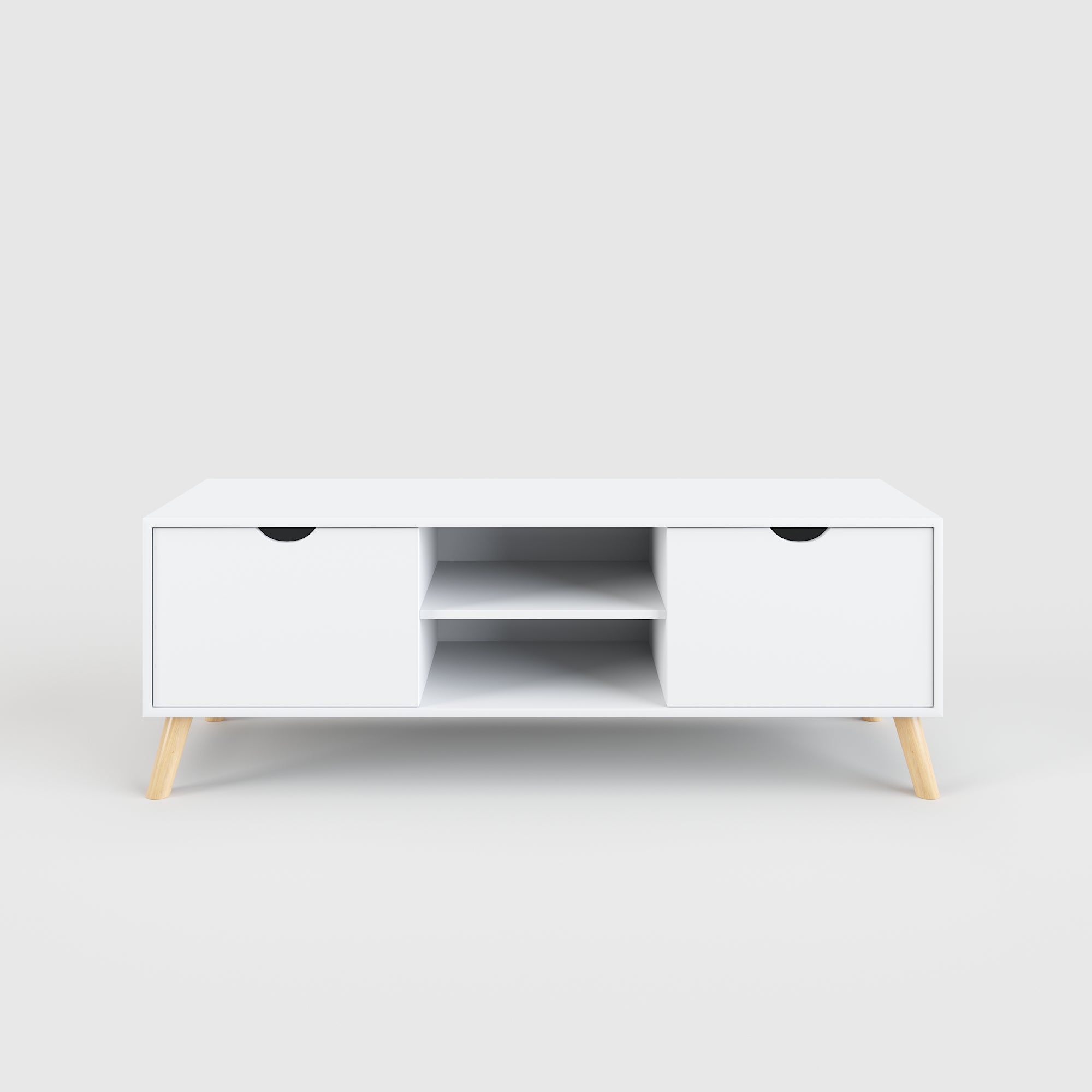 Scandi - TV-Möbel, Lowboard mit 2 Türen mit Soft-Close und 2 offene Fächer, Holzfüsse