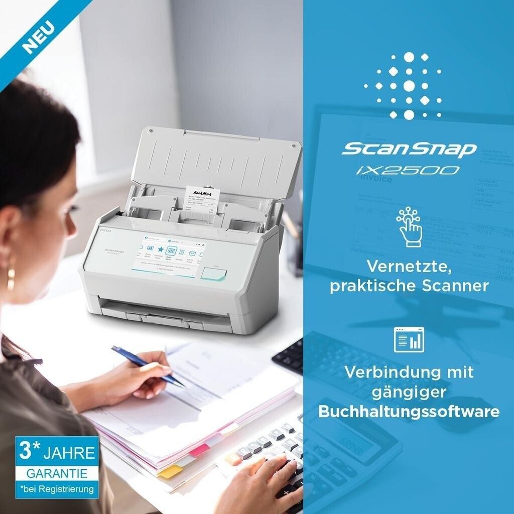 Ricoh ScanSnap iX2500 Weiß - Ultraschneller Duplex-Scanner mit 45 S./Min., 100-Blatt-ADF,