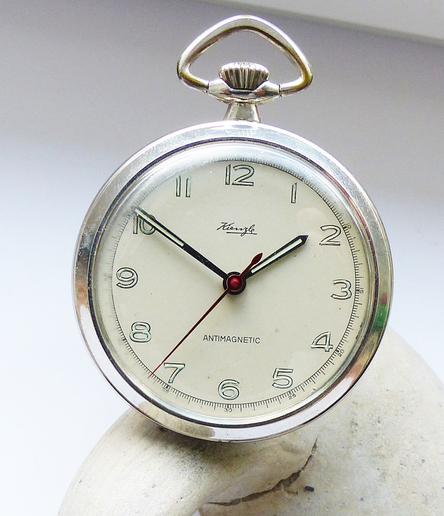 Schöne Kienzle Classic Herren Taschenuhr mit weißen Zifferblatt und arabischen Zahlenindizes, grosser zentraler Sekunde, fluoreszierenden Zeigern und Indizes. Die Uhr ist voll funktionsfähig und in sehr guten Zustand s. Fotos Hersteller : Kienzle Deutschland Uhrwerk : Kaliber Kienzle Mechanischer Ha