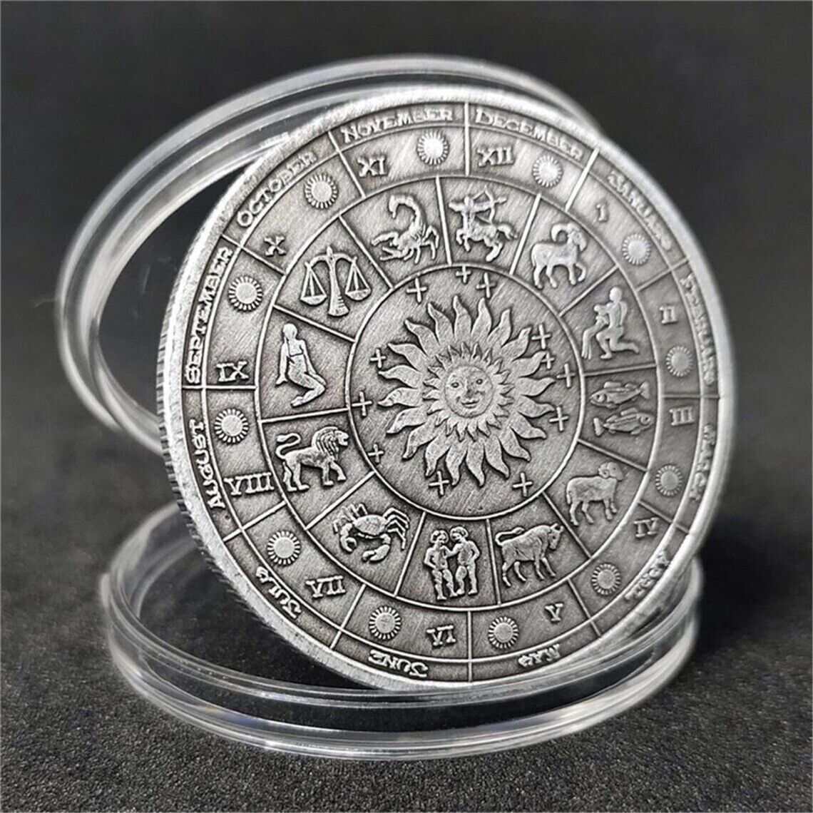 Schöne Medaille Sternzeichen mit 12 Sternzeichen Diese Medaillen wurden nur in kleiner geringer Auflage hergestellt und sind daher selten zu bekommen. Ideal für Sammler oder auch einfach nur ein schönes Geschenk. Maße: 40 mm x 3 mm Silber Plated mit Farbauflage