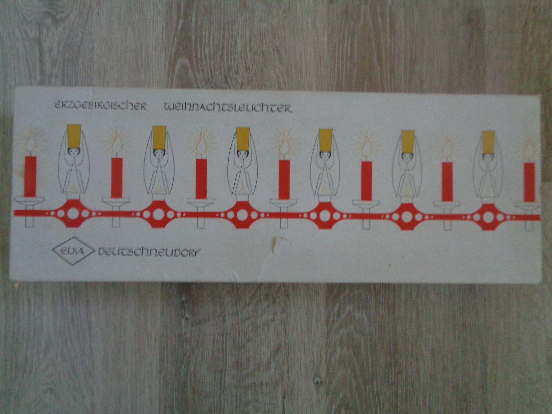 Biete in dieser Auktion an: schöner alter Adventsleuchter aus dem Erzgebirge ELKA Deutschneudorf mit Engel An den Kerzenhalter Gebrauchsspuren vorhanden. Bei einem fehlt die Metalltülle. Auf Grund des Alters und Gebrauchs darf man auch mit Farbabplatzungen rechnen. Da ich viele weitere Artikel im An