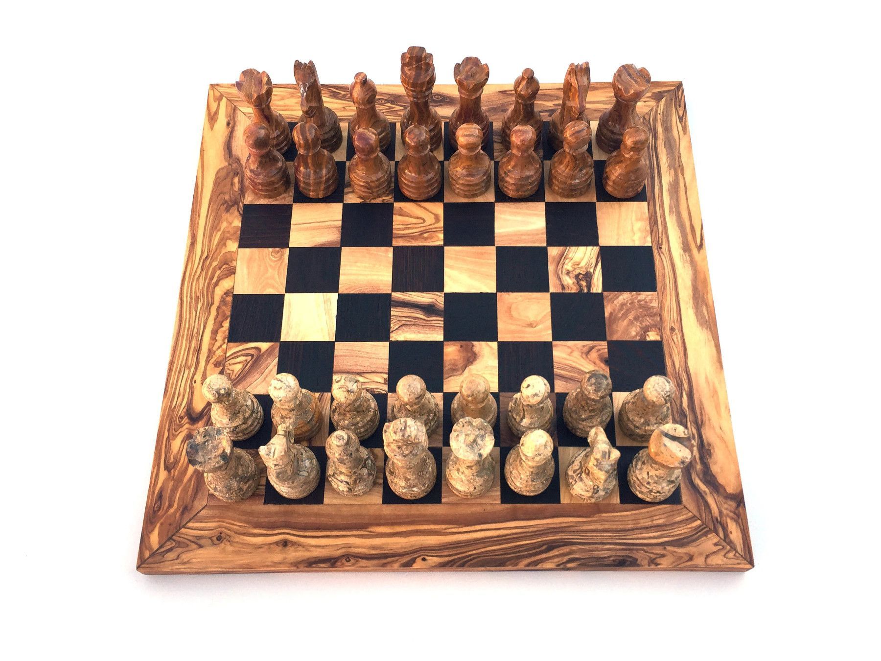 Schachspiel als Brett Größe wählbar Das Schachbrett mit den geraden kanten ist aus Olivenholz und in Handarbeit angefertigt. Der künstlerisch begabte Handwerke hat jedes Stück einzeln per Hand hergestellt, was jedes Stück zu einem Unikat macht. Die einzigartige rötlich-braune Maserung mit einem unre