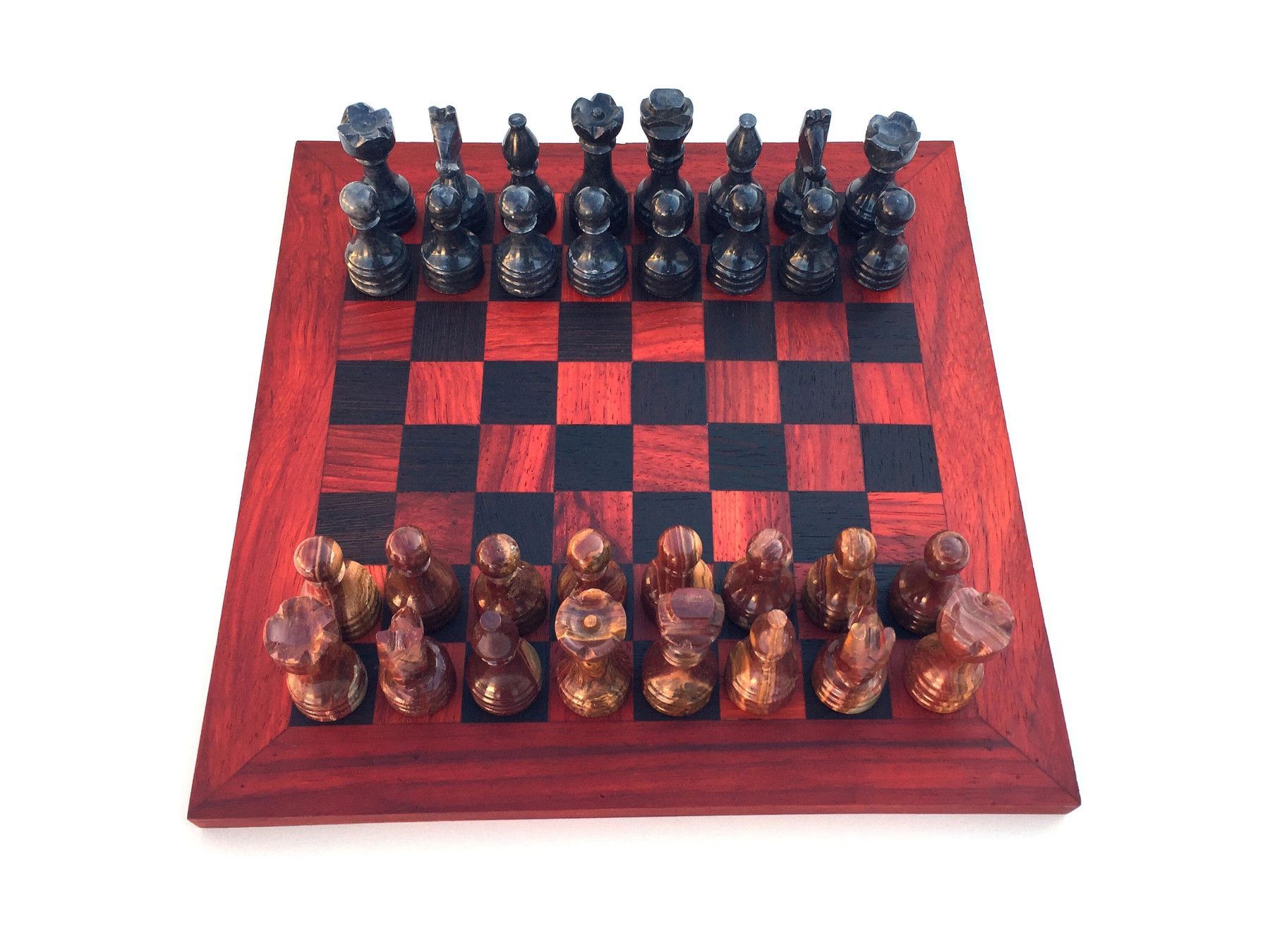 Schachspiel als Brett Größe wählbar Das Schachbrett mit den geraden kanten ist aus Holz und in Handarbeit angefertigt. Der künstlerisch begabte Handwerke hat jedes Stück einzeln per Hand hergestellt, was jedes Stück zu einem Unikat macht. Das einzigartige rötlich-dunkelbraune Echtholz mit einem unre