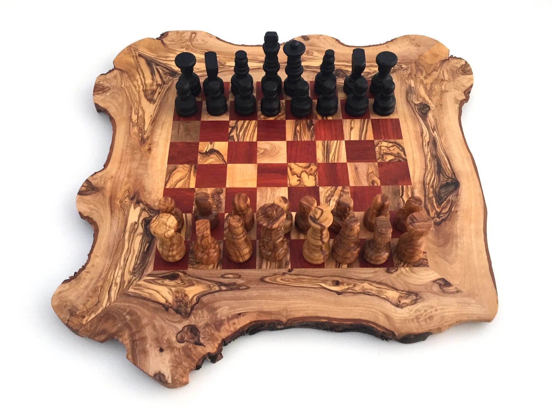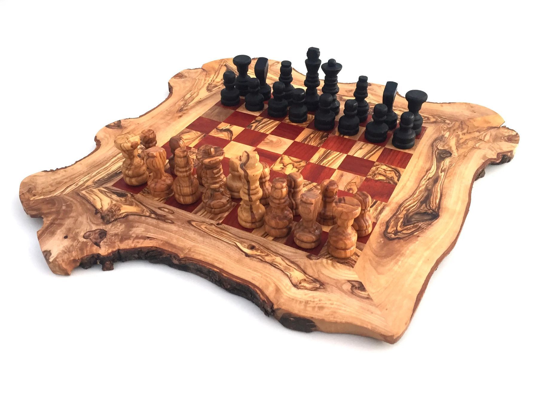 Schachspiel rustikal, Schachbrett Gr. L inkl. 32er Schachfiguren, aus Olivenholz