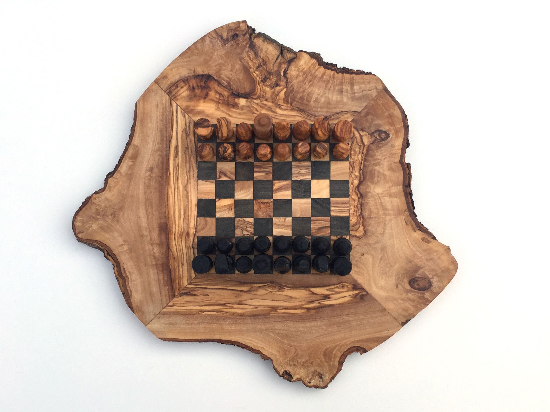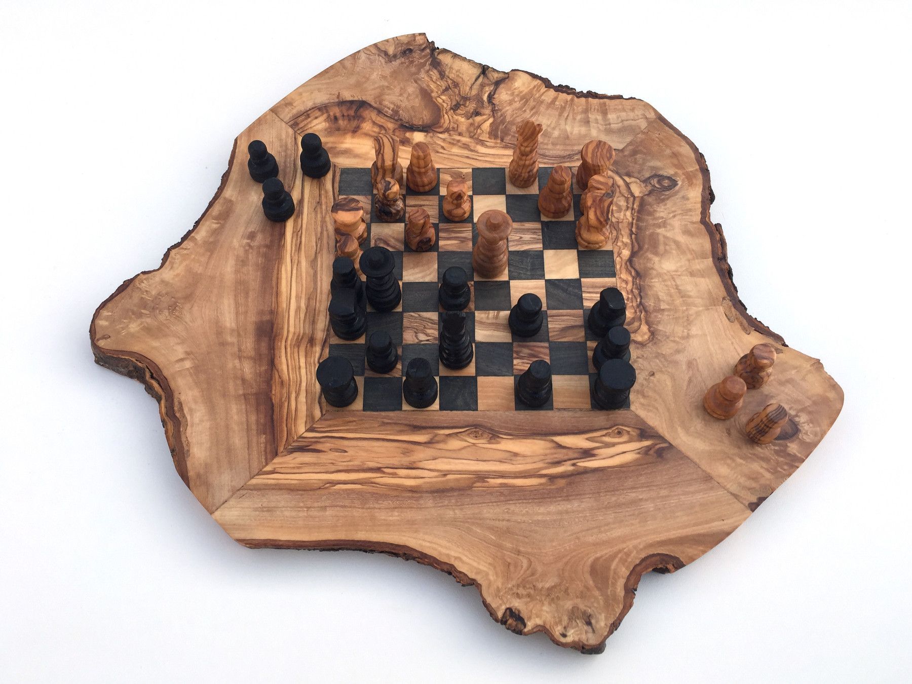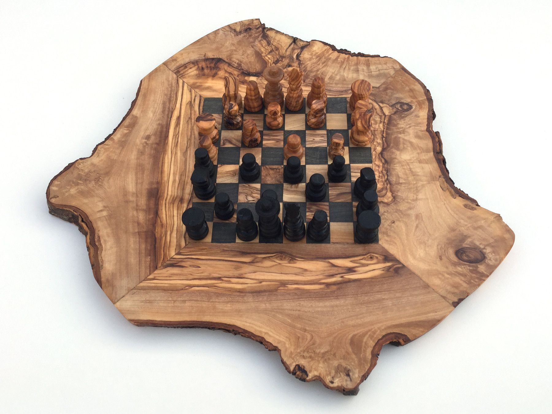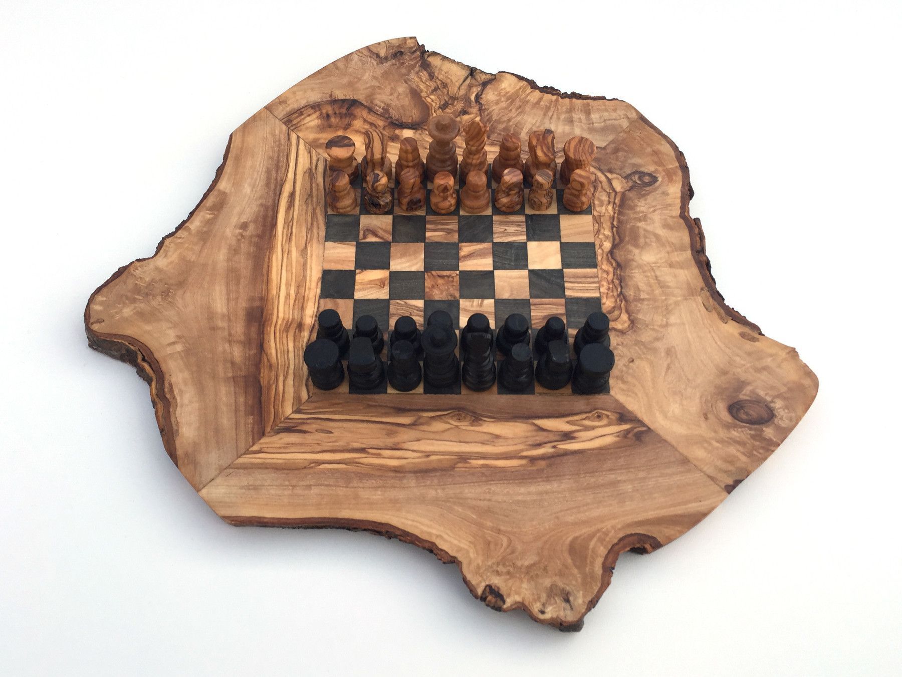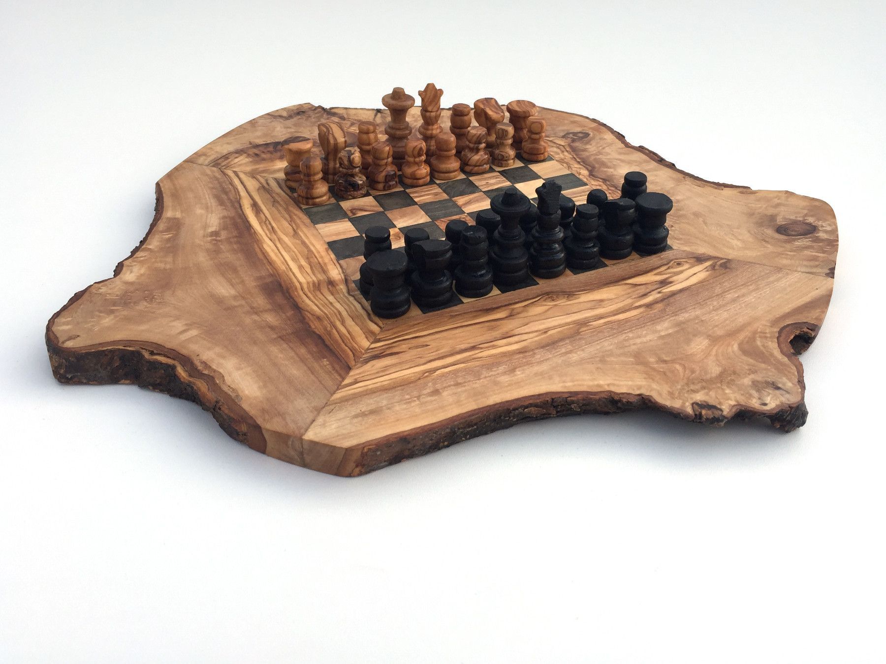 Schachspiel rustikal Schachbrett Gr. S inkl. Schachfiguren aus Olivenholz Handarbeit
